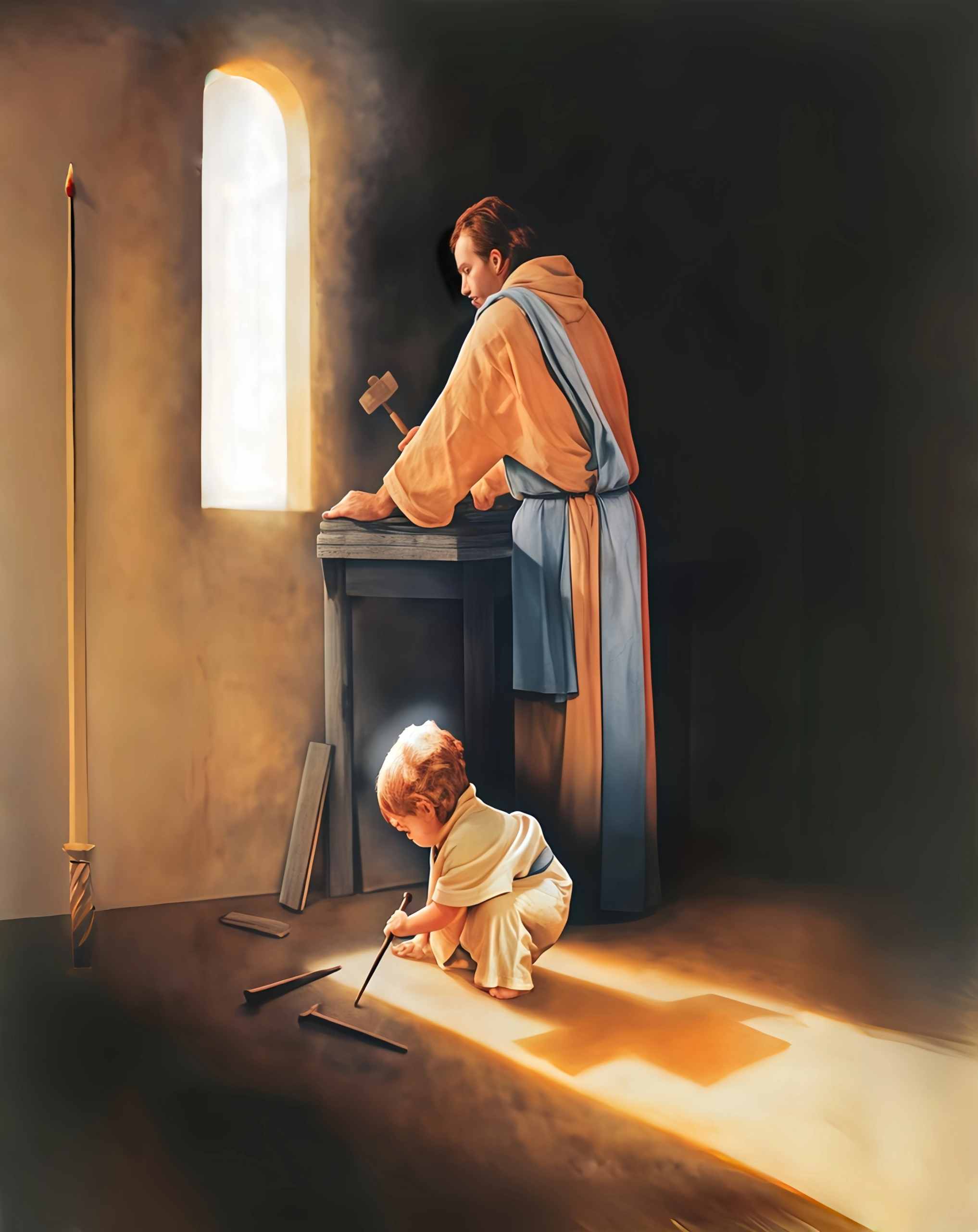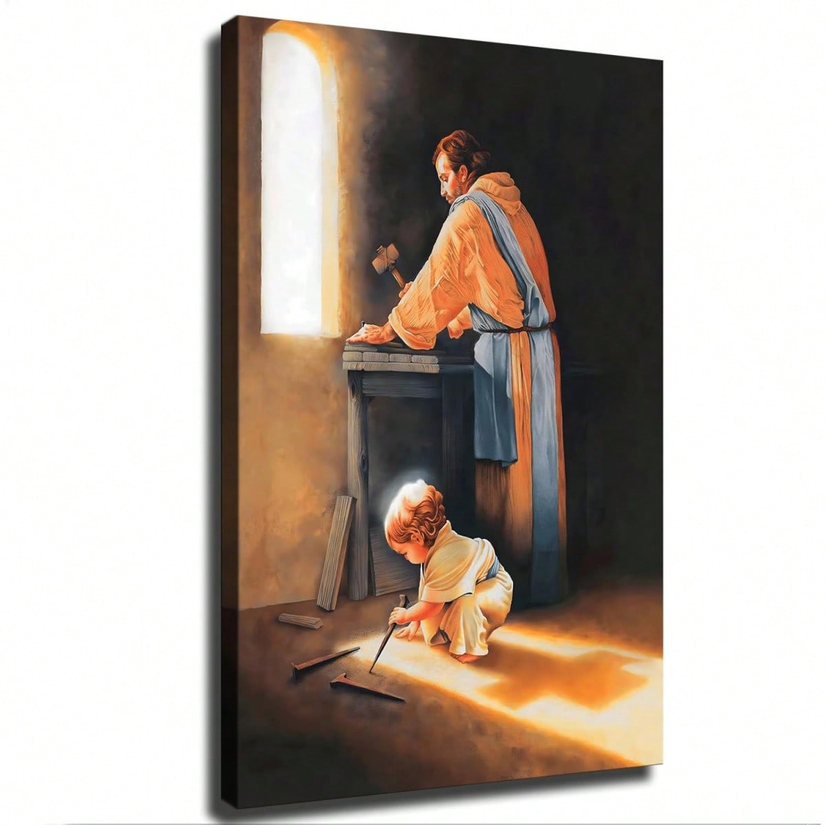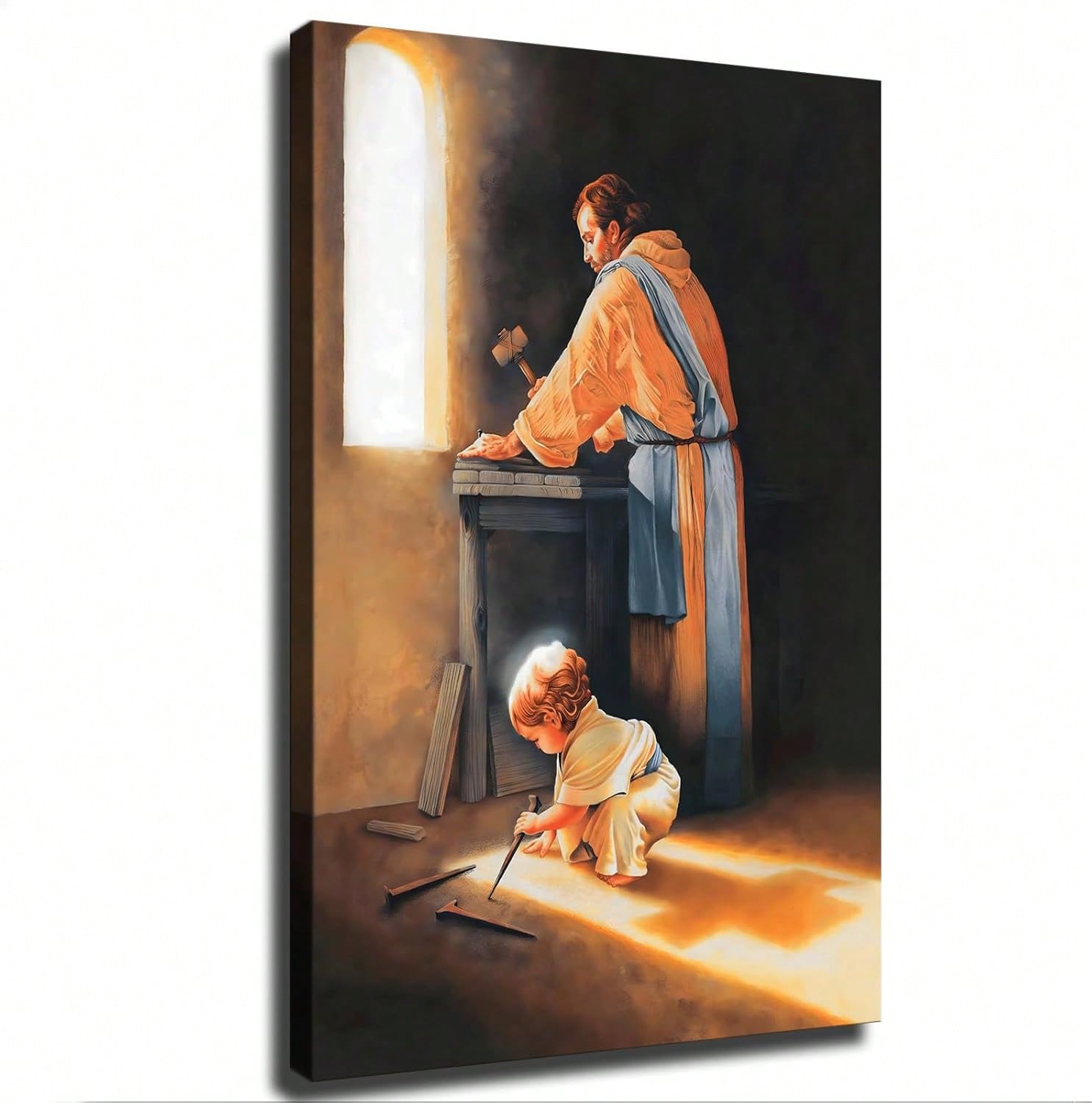 Boy Jesus Nail Spikes In Joseph’s Carpenter Shop Canvas Poster Holiday Picture Modern Aesthetics Mural Wall Art Decoration*Inch-)Room Decor Bedroom,Smiling Friends,Room Decor,Decrotions,, Cuadros,Coffee Bar Essentials