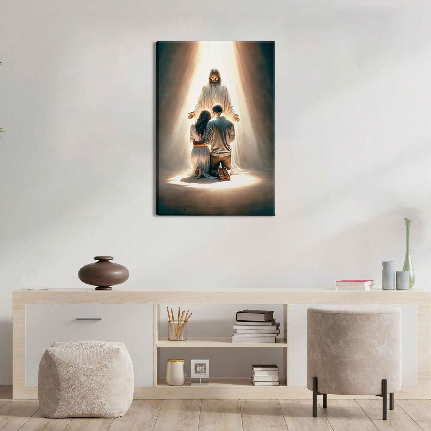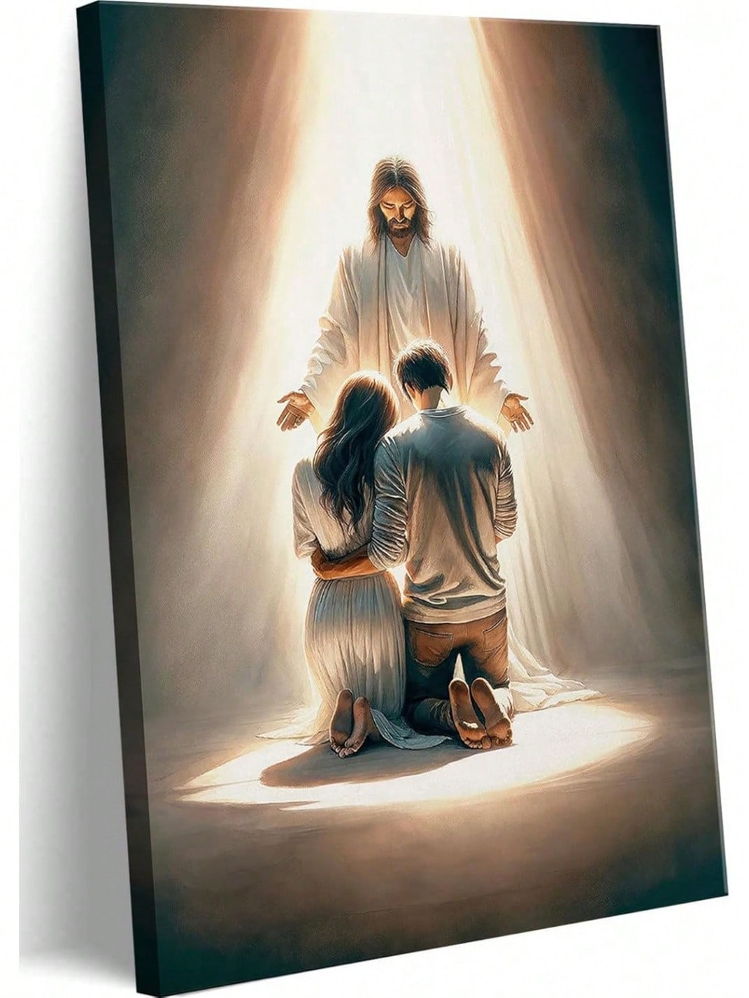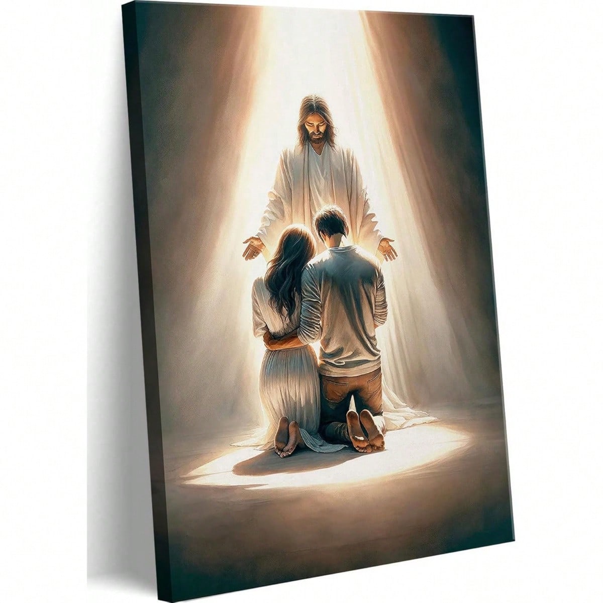 Jesus Blesses Couple Canvas Wall Art Couple Kneeling And Praying To Jesus Wall Decor Picture Christianity Jesus Christ Postre Print Bedroom Living Room Prayer Room Artwork Home Decorationroom Decor Bedroom,Smiling Friends,Room Decor,Decrotions,, Cuadros,Coffee Bar Essentials