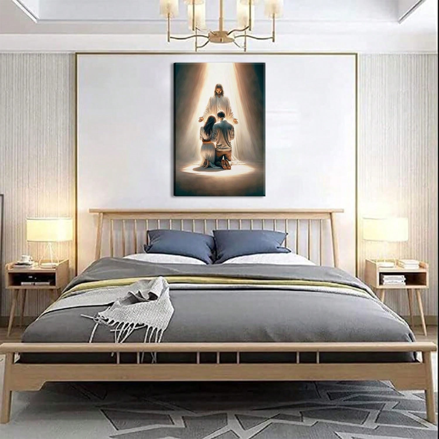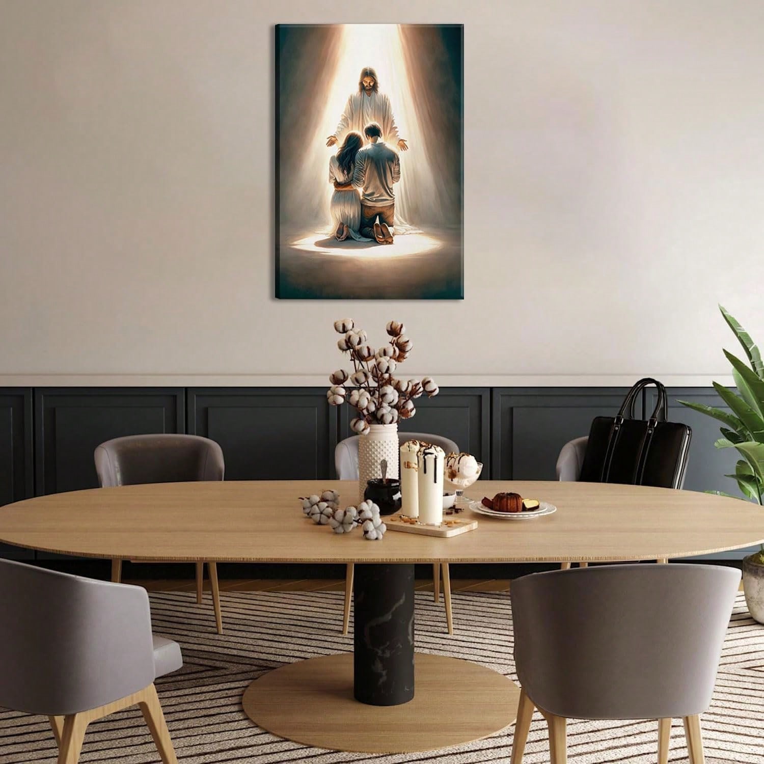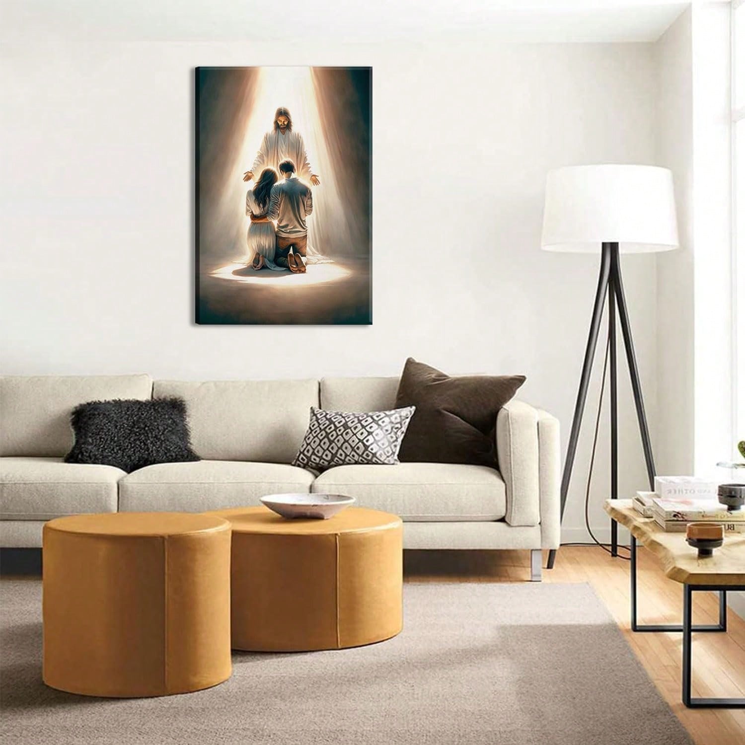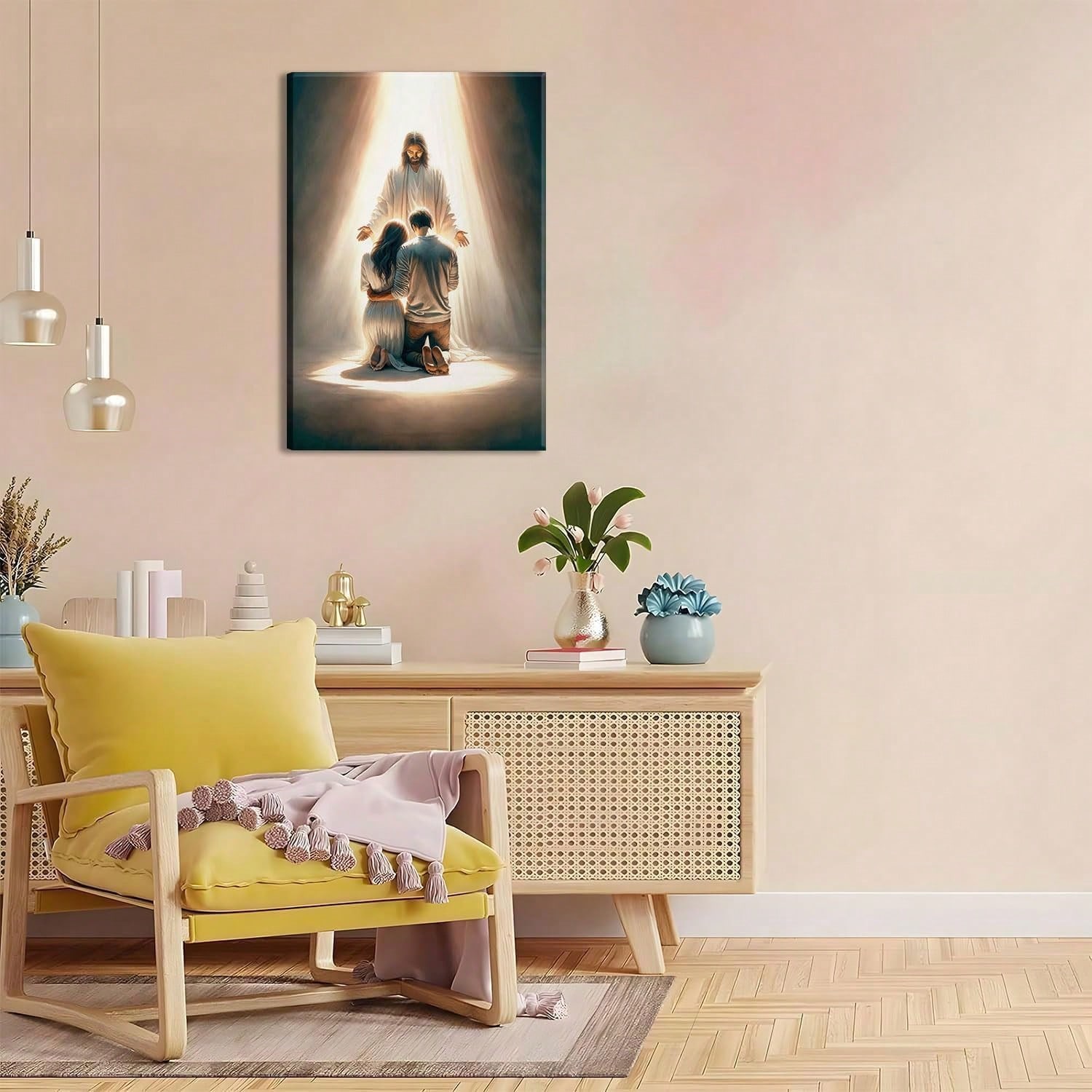 Jesus Blesses Couple Canvas Wall Art Couple Kneeling And Praying To Jesus Wall Decor Picture Christianity Jesus Christ Postre Print Bedroom Living Room Prayer Room Artwork Home Decorationroom Decor Bedroom,Smiling Friends,Room Decor,Decrotions,, Cuadros,Coffee Bar Essentials