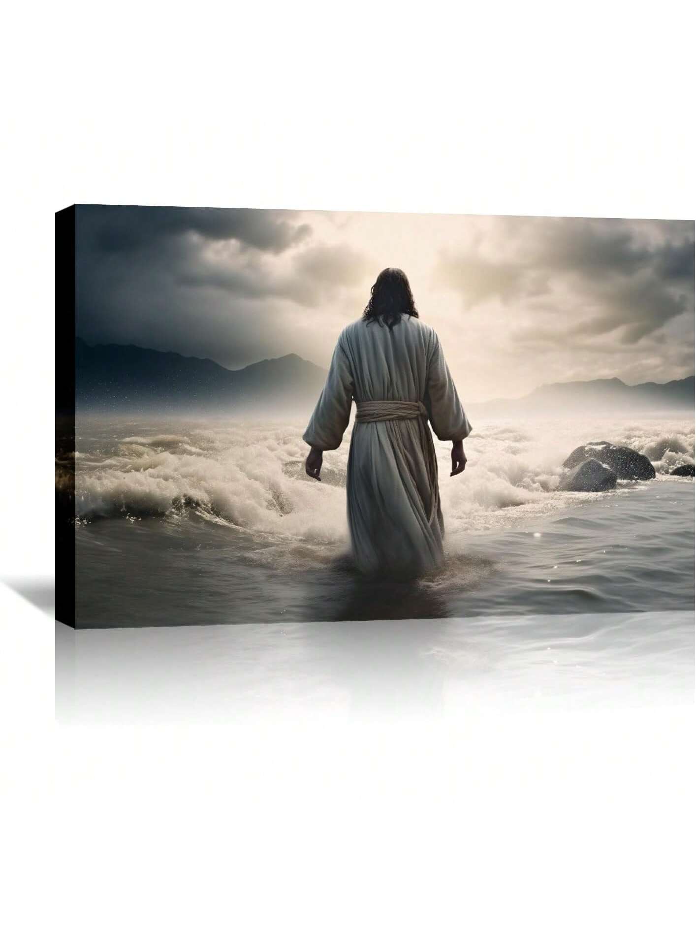 Jesus Canvas Wall Art Christ Wall Decor Jesus Walking In Picture Religious Painting Christian Artwork Living Room Bathroom Modern Home Decor (Art-,.X.)Room Decor Bedroom,Smiling Friends,Room Decor,Decrotions,, Cuadros,Coffee Bar Essentials