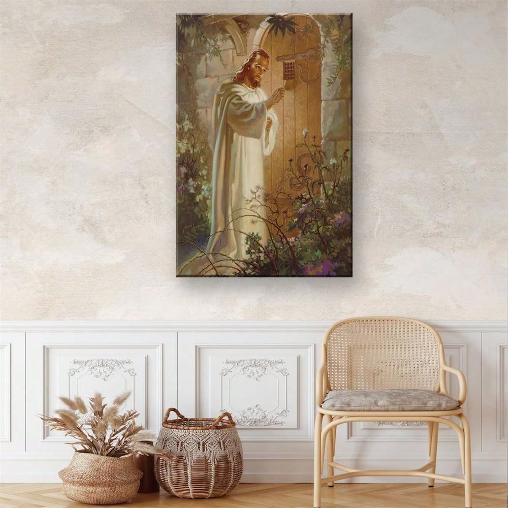Jesus Christ Knocking At Door Canvas Poster Holiday Picture Modern Aesthetics Mural Wall Art Decoration*Inch-Unframed)Room Decor Bedroom,Smiling Friends,Room Decor,Decrotions,, Cuadros,Coffee Bar Essentials