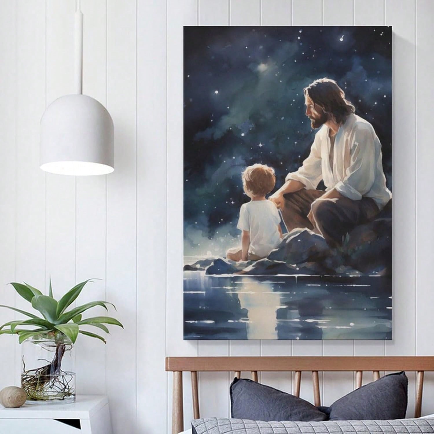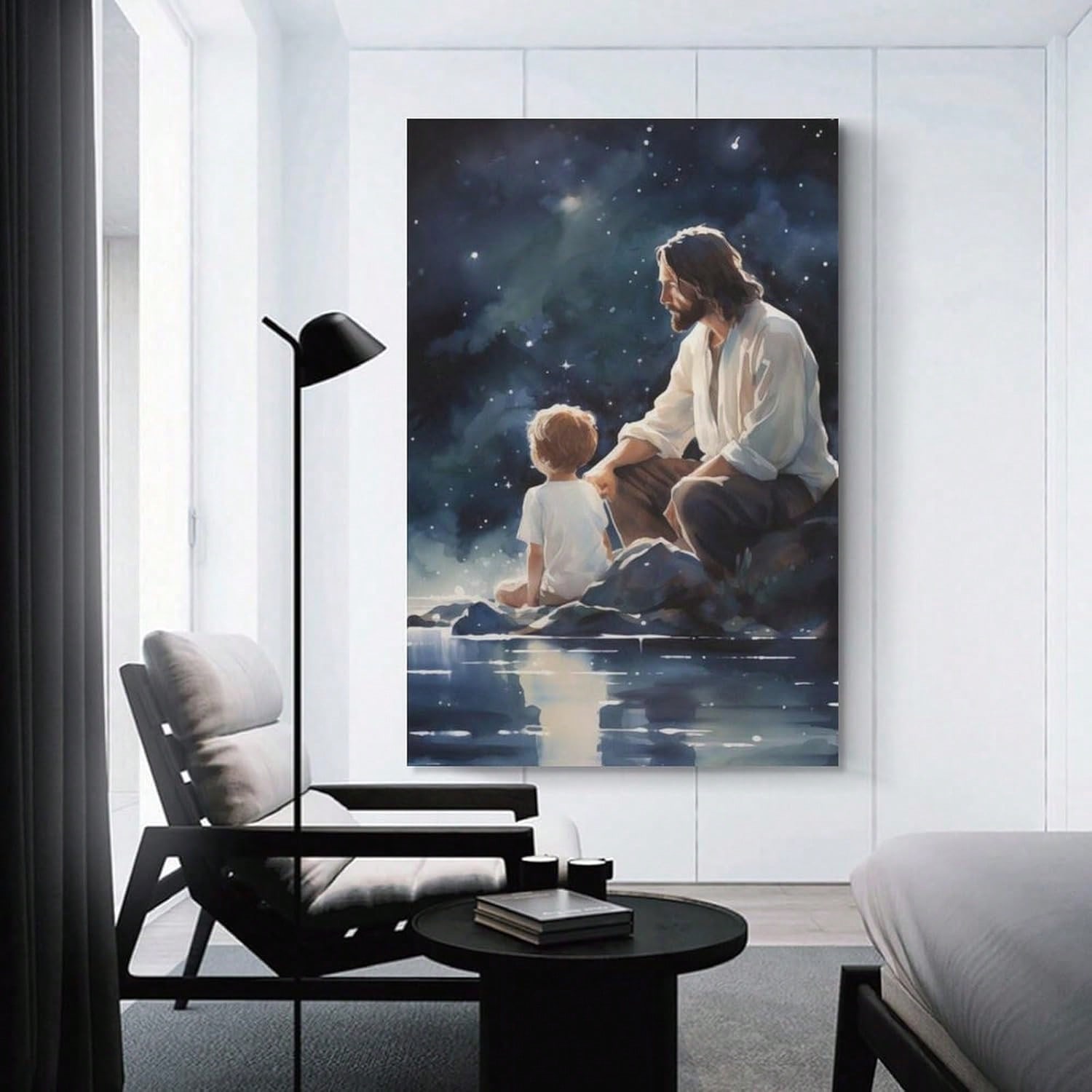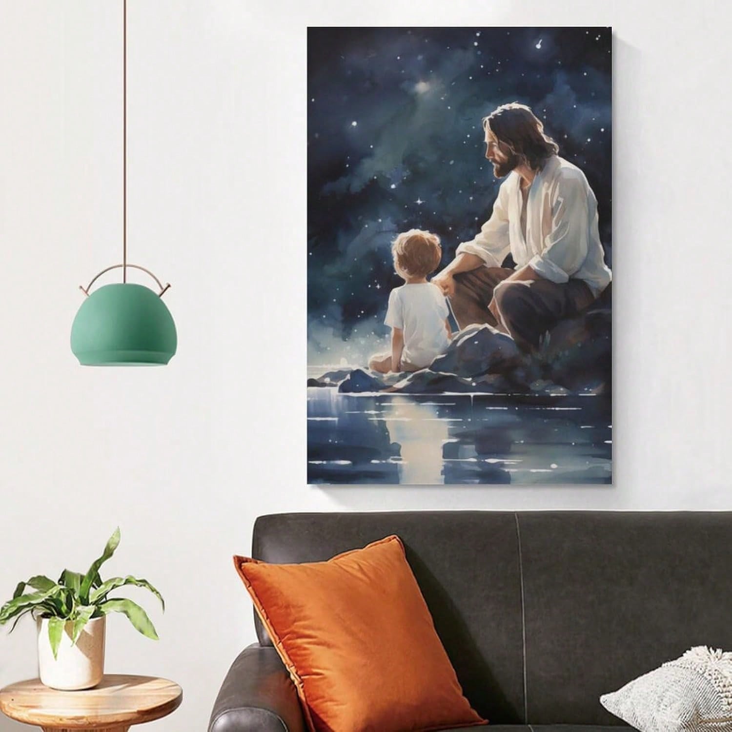 Jesus Christ Mural – Jesus And Boy Looking At Stars – Happy Jesus Art Christian Jesus Living Room Wall Decoration Painting Xinch(Xcm)Room Decor Bedroom,Smiling Friends,Room Decor,Decrotions,, Cuadros,Coffee Bar Essentials