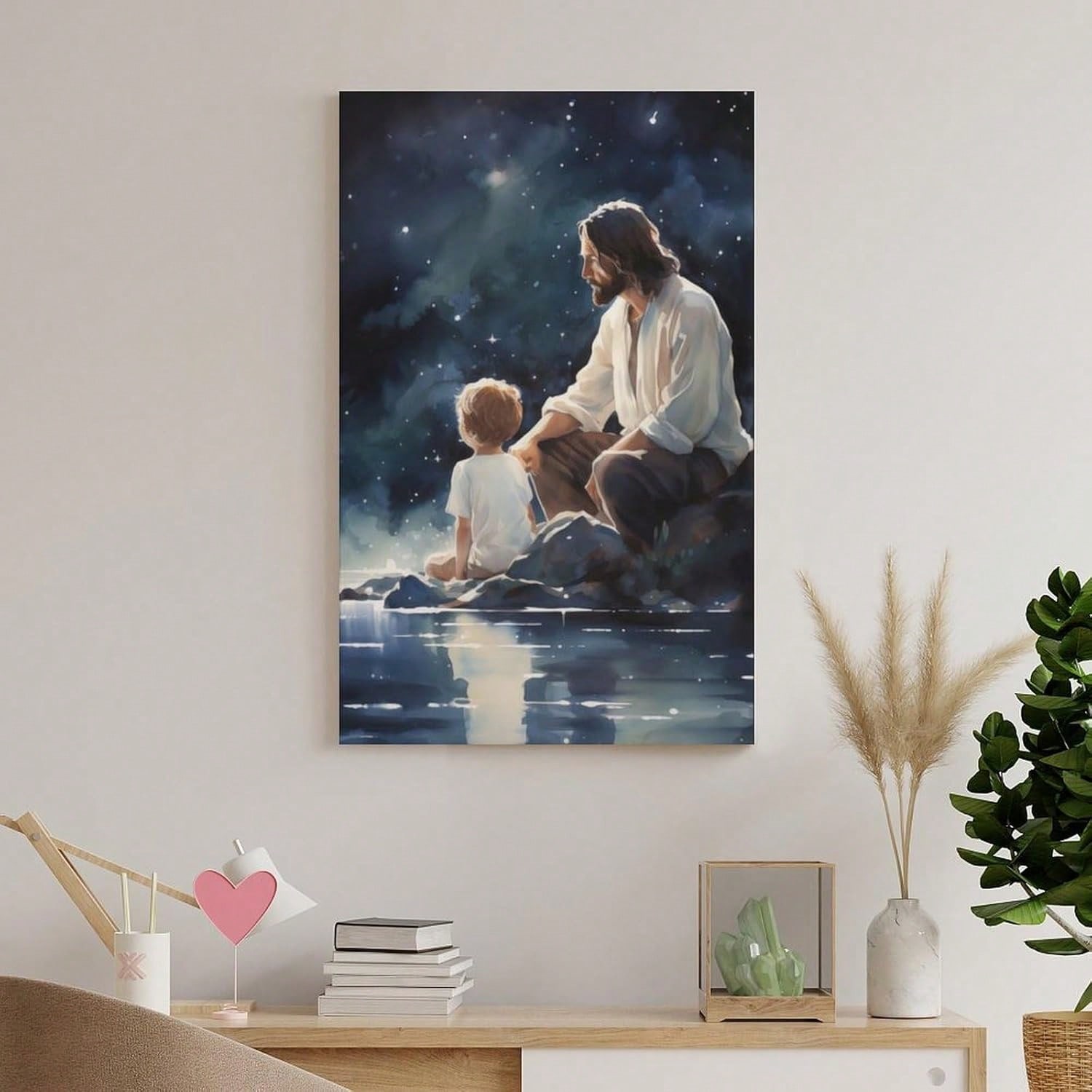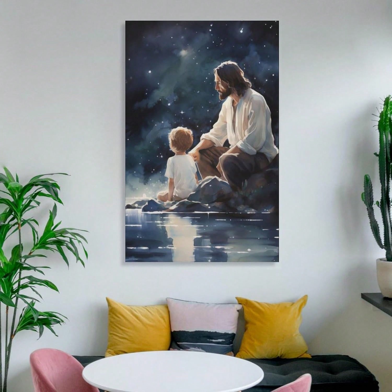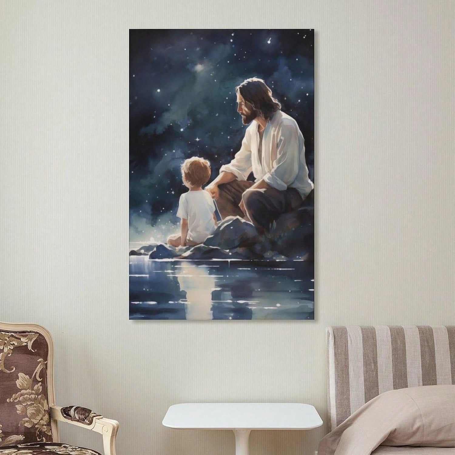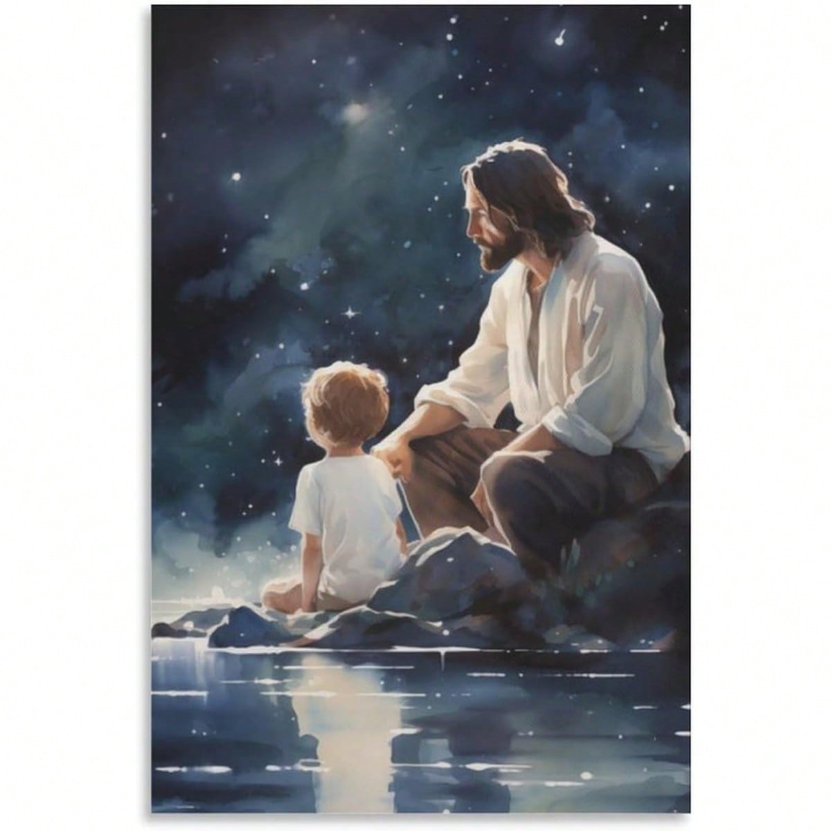 Jesus Christ Mural – Jesus And Boy Looking At Stars – Happy Jesus Art Christian Jesus Living Room Wall Decoration Painting Xinch(Xcm)Room Decor Bedroom,Smiling Friends,Room Decor,Decrotions,, Cuadros,Coffee Bar Essentials