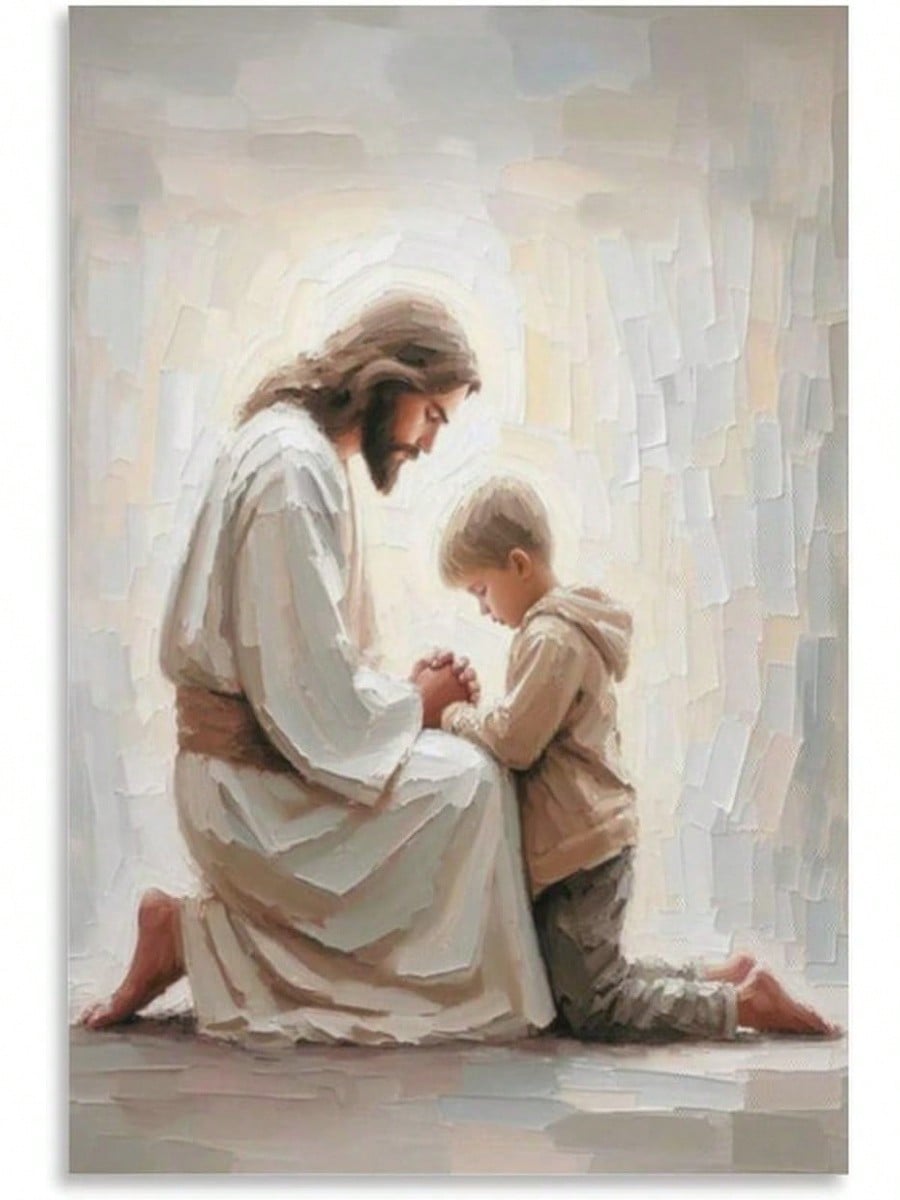 Jesus Christ Mural – Jesus And Boy Praying Together – Jesus Art Bible Canvas Painting Christian Painting Printing Canvas Painting Living Room Bedroom Modern Decoration Xinch(Xcm)Room Decor Bedroom,Smiling Friends,Room Decor,Decrotions,, Cuadros,Coffee Bar Essentials