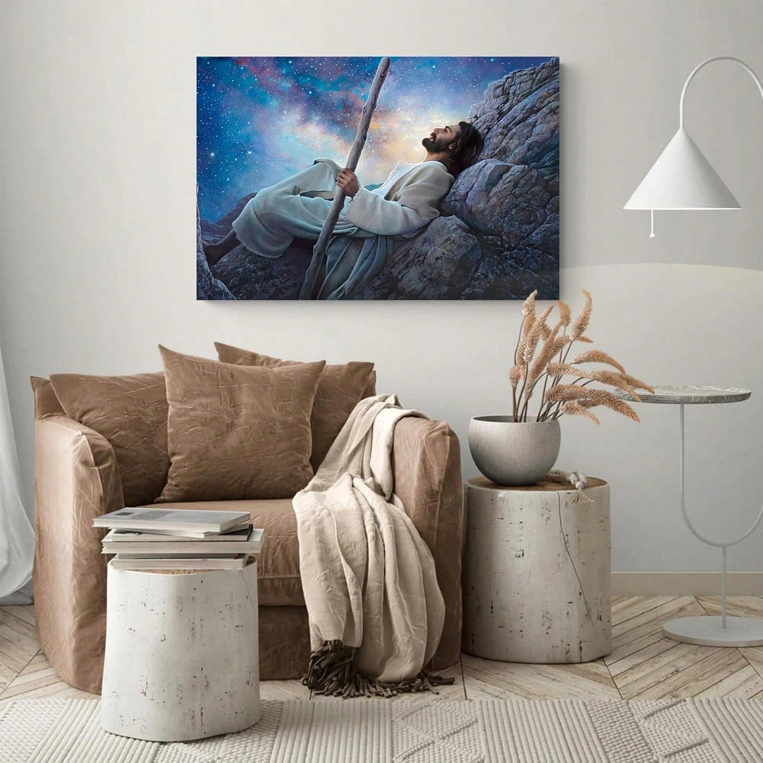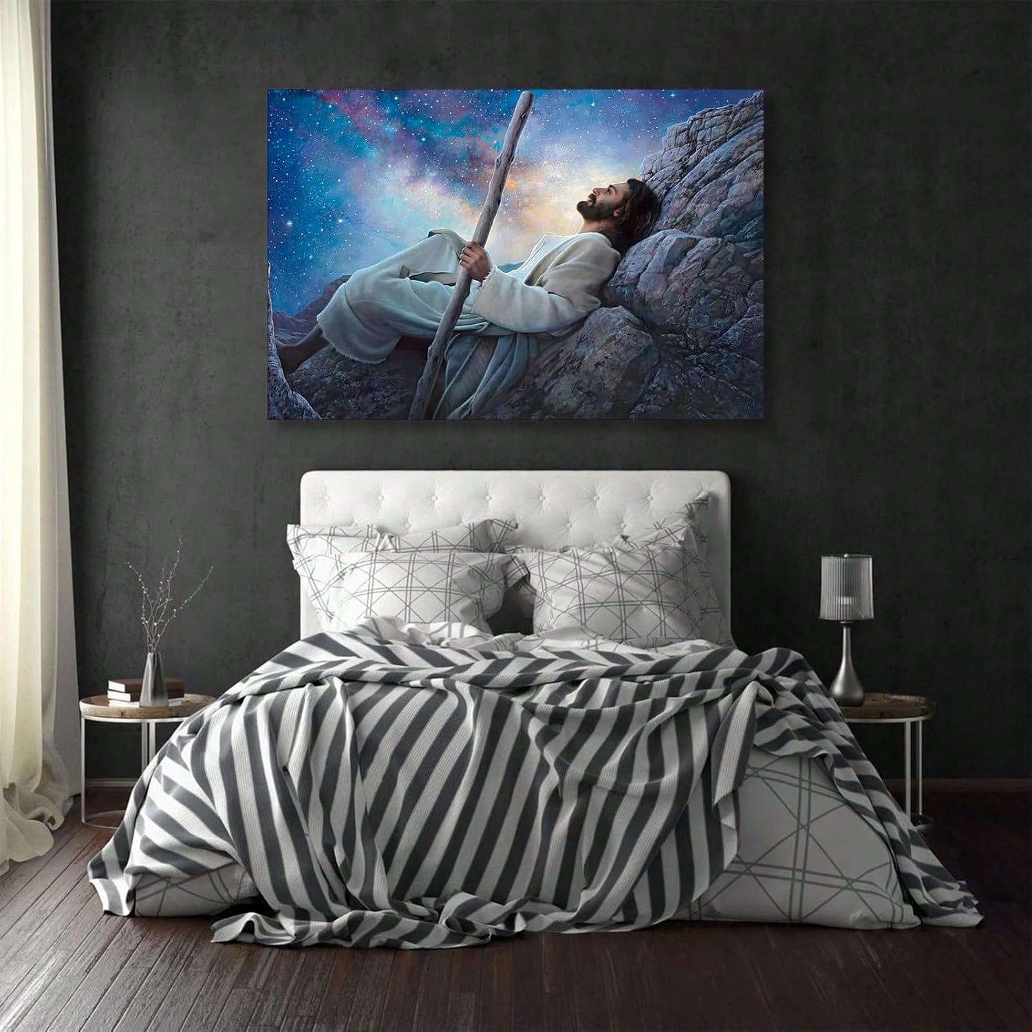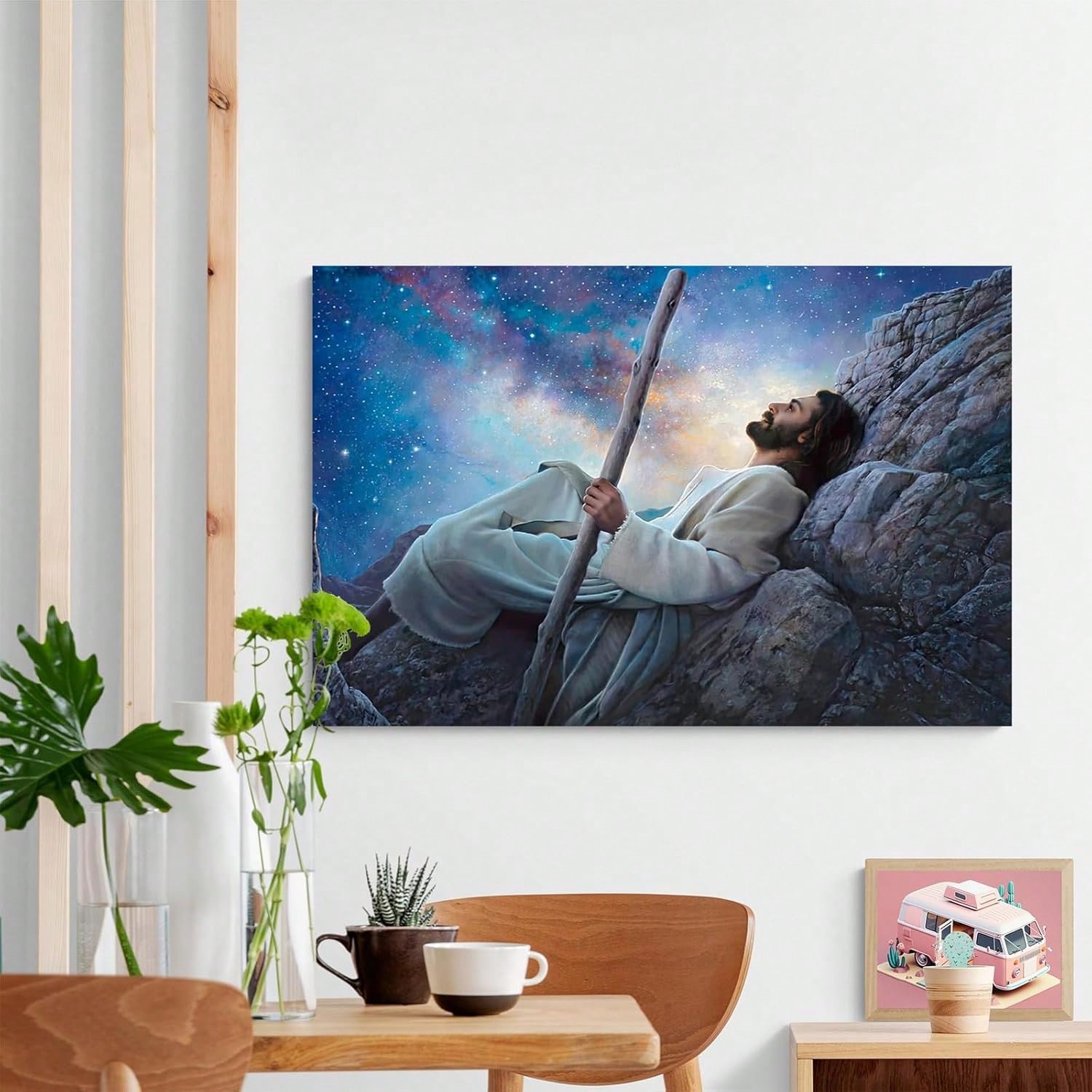 Jesus Christ Mural Under Starry, Christian Decoration At Night, Jesus Artistic Conception Muralroom Decor Bedroom,Smiling Friends,Room Decor,Decrotions,, Cuadros,Coffee Bar Essentials