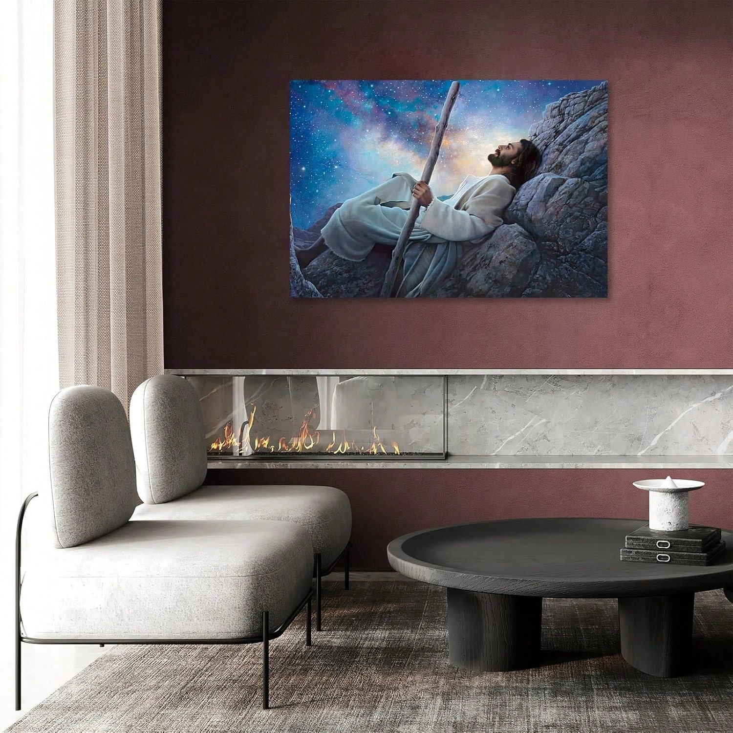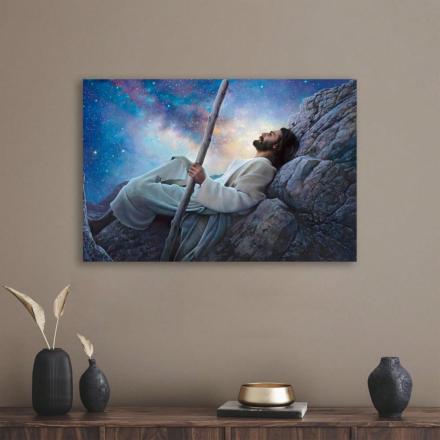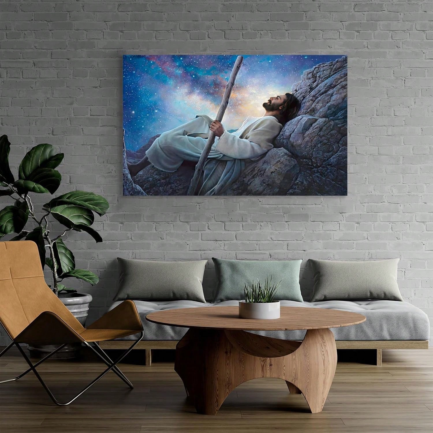 Jesus Christ Mural Under Starry, Christian Decoration At Night, Jesus Artistic Conception Muralroom Decor Bedroom,Smiling Friends,Room Decor,Decrotions,, Cuadros,Coffee Bar Essentials
