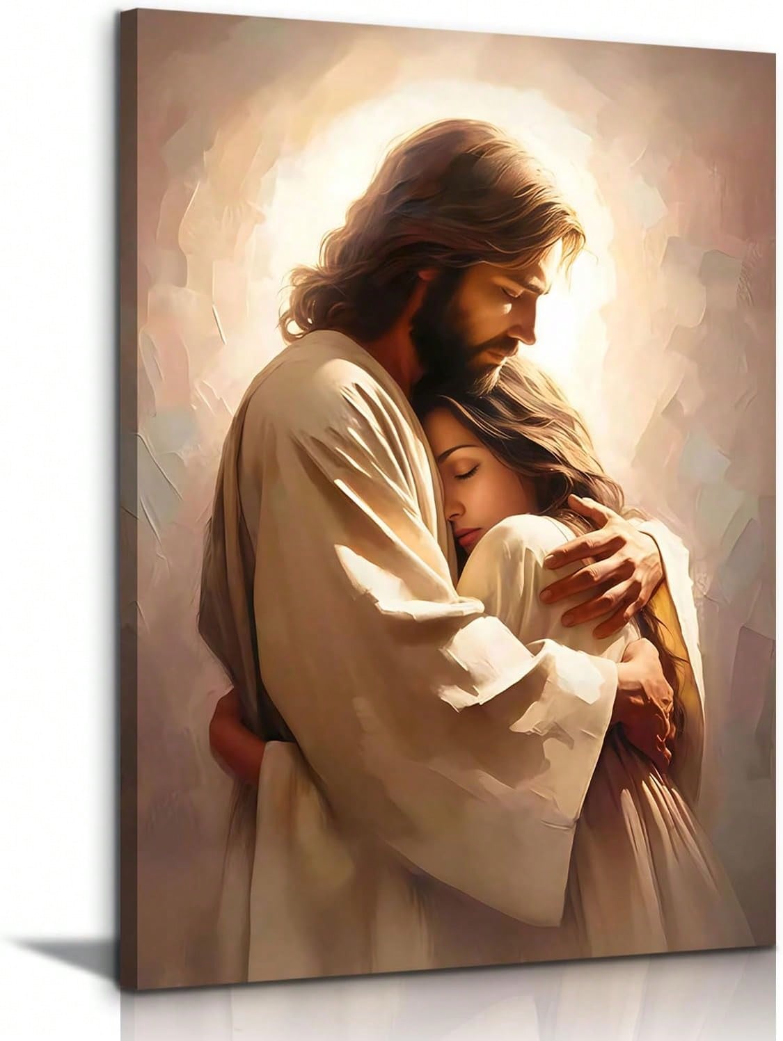 Jesus Embracing Woman Canvas Wall Art Haven Poster Prints Christian Spiritual Painting Bible Art Pictures Jesus And Girl Wall Decor Bedroom Living Room Ready To HangPrice Including Frame,Room Decor Bedroom,Smiling Friends,Room Decor,Decrotions,, Cuadros,Coffee Bar Essentials