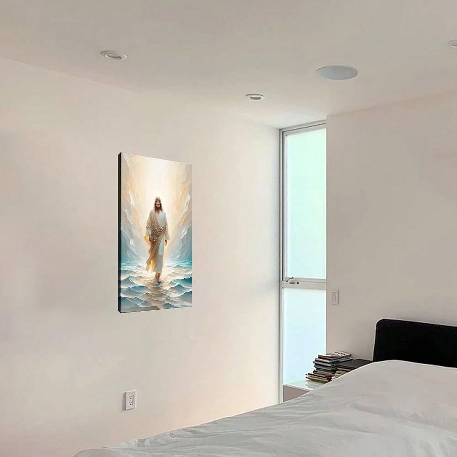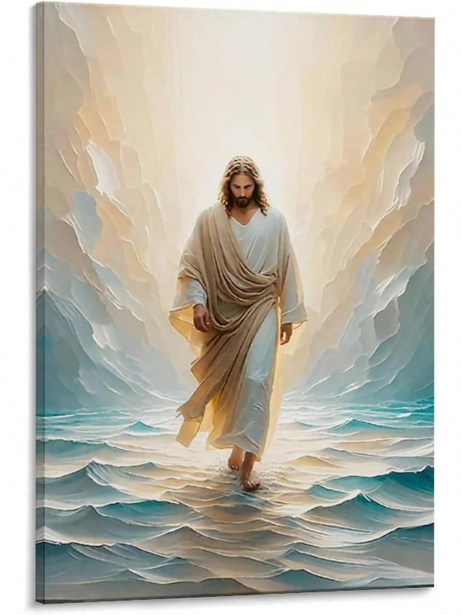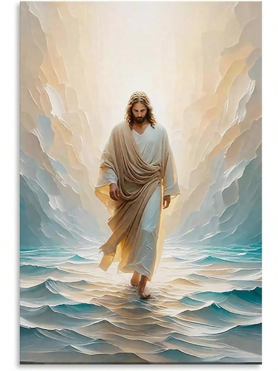 Jesus Walking On Canvas Wall Art Christian Bible Stories Wall Decor Picture Divine Light Modern Religious Poster Print Canvas Home Living Room Bedroom Decor Mural Xinch(Xcm) Unframe-Styleroom Decor Bedroom,Smiling Friends,Room Decor,Decrotions,, Cuadros,Coffee Bar Essentials