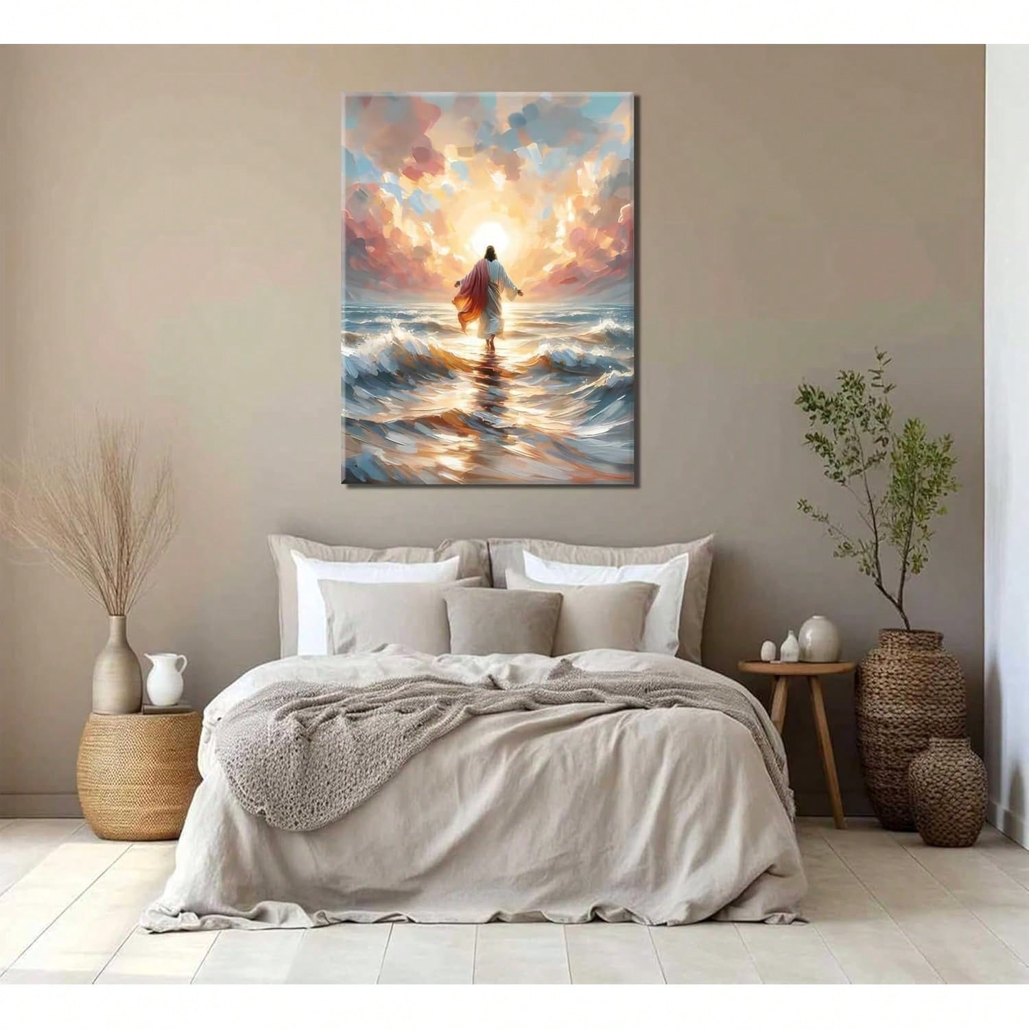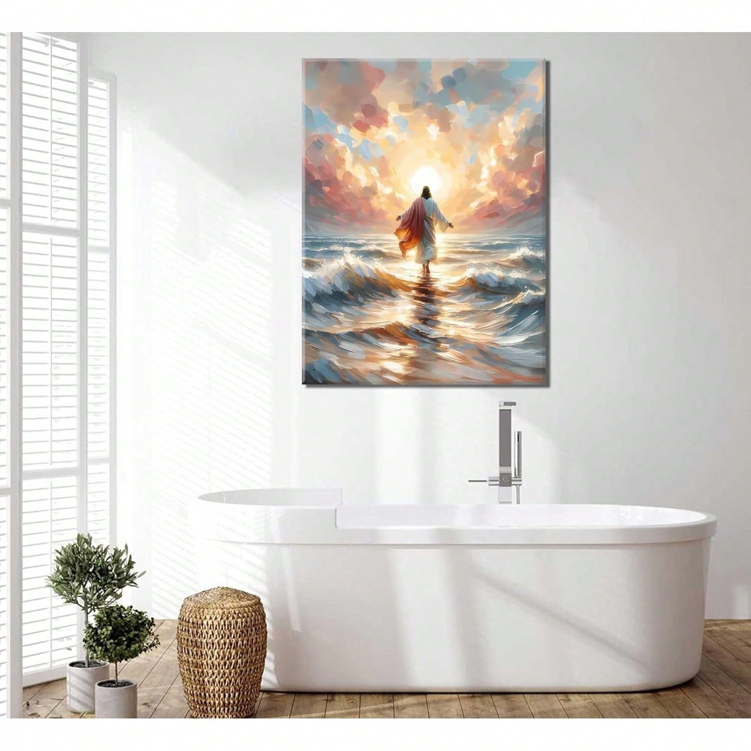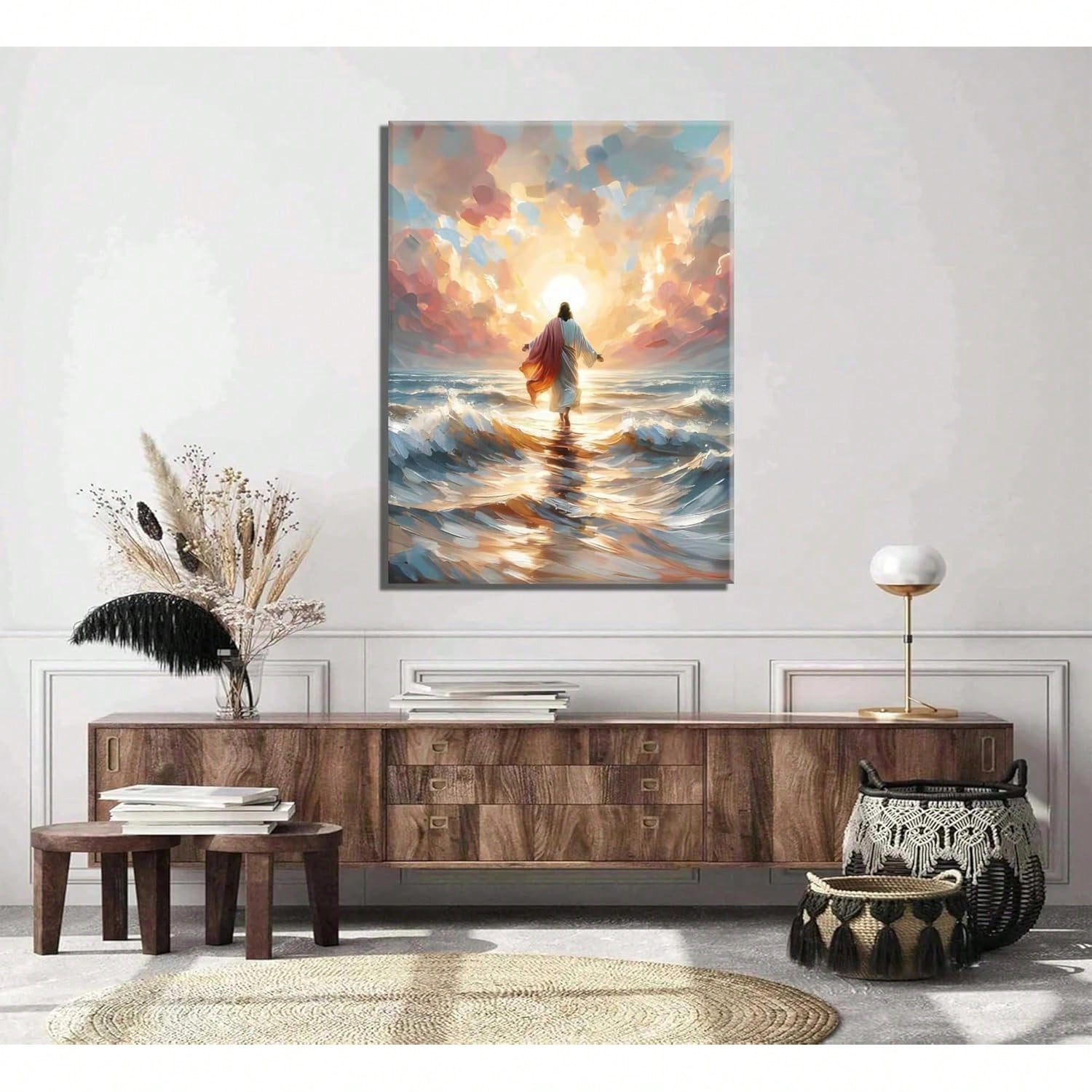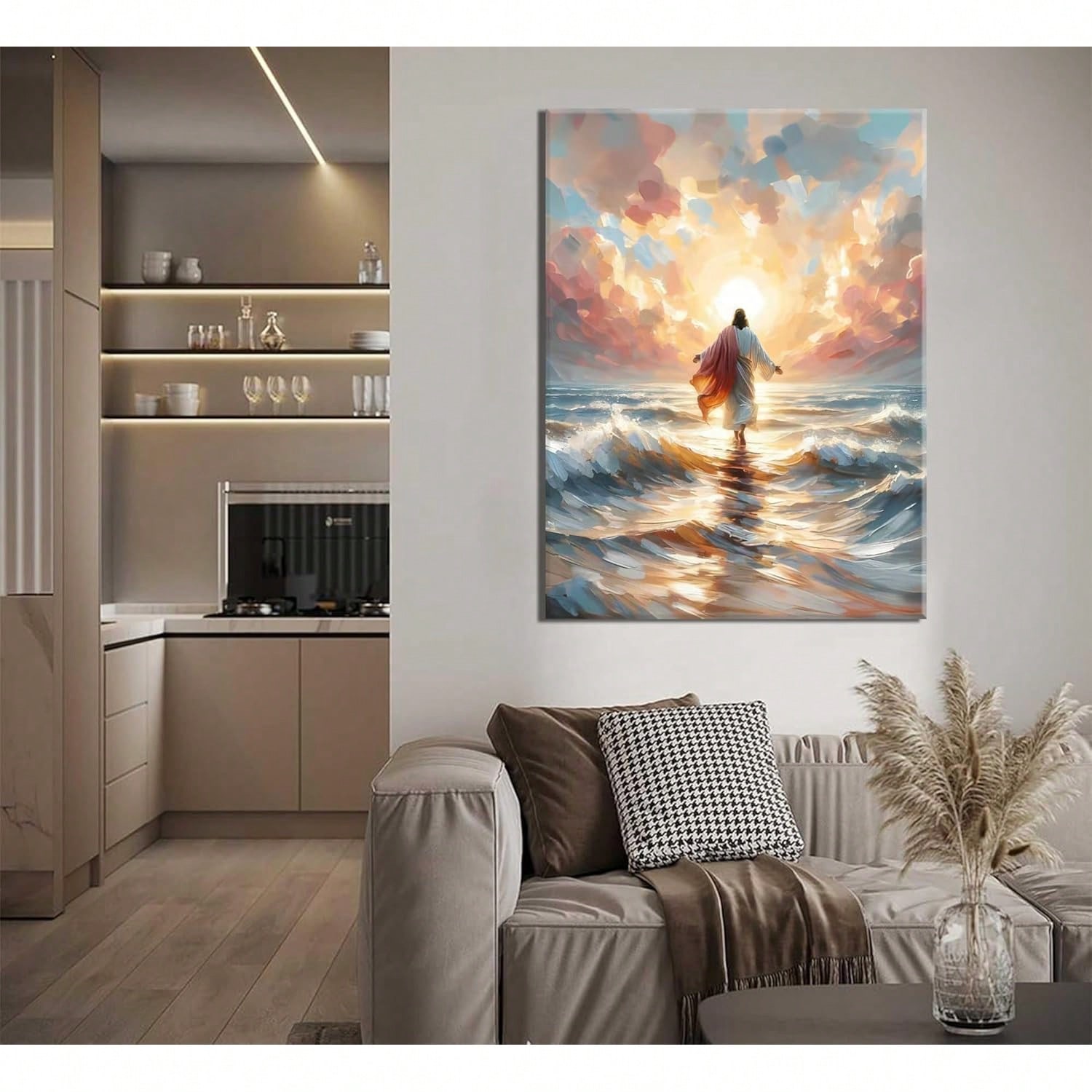 Jesus Walking On Canvas Wall Art Christian God Wall Decor Sacred God Walking On Ocean Beach Painting Pictures Religious Posters Prints Living Room Bedroom Home Decorations Room Decor Bedroom,Smiling Friends,Room Decor,Decrotions,, Cuadros,Coffee Bar Essentials
