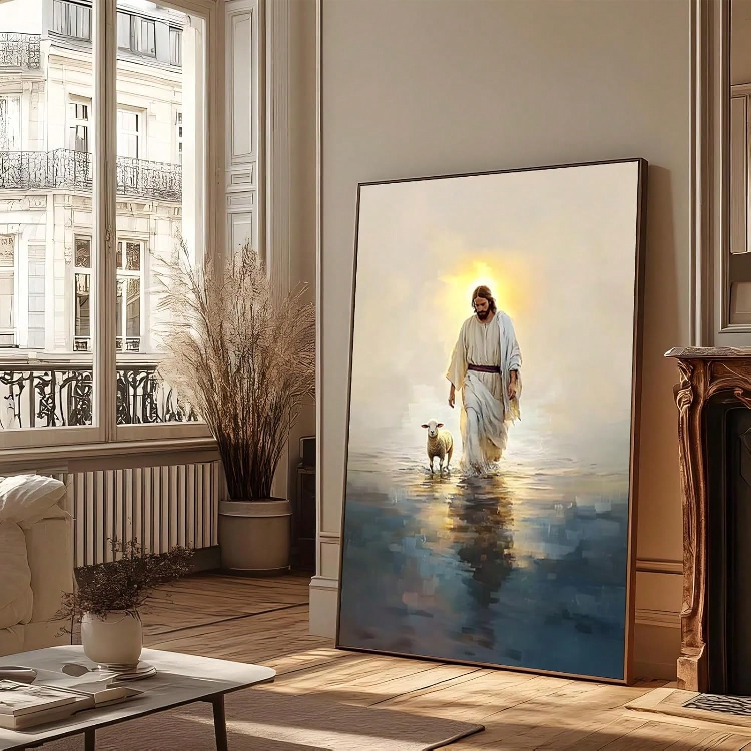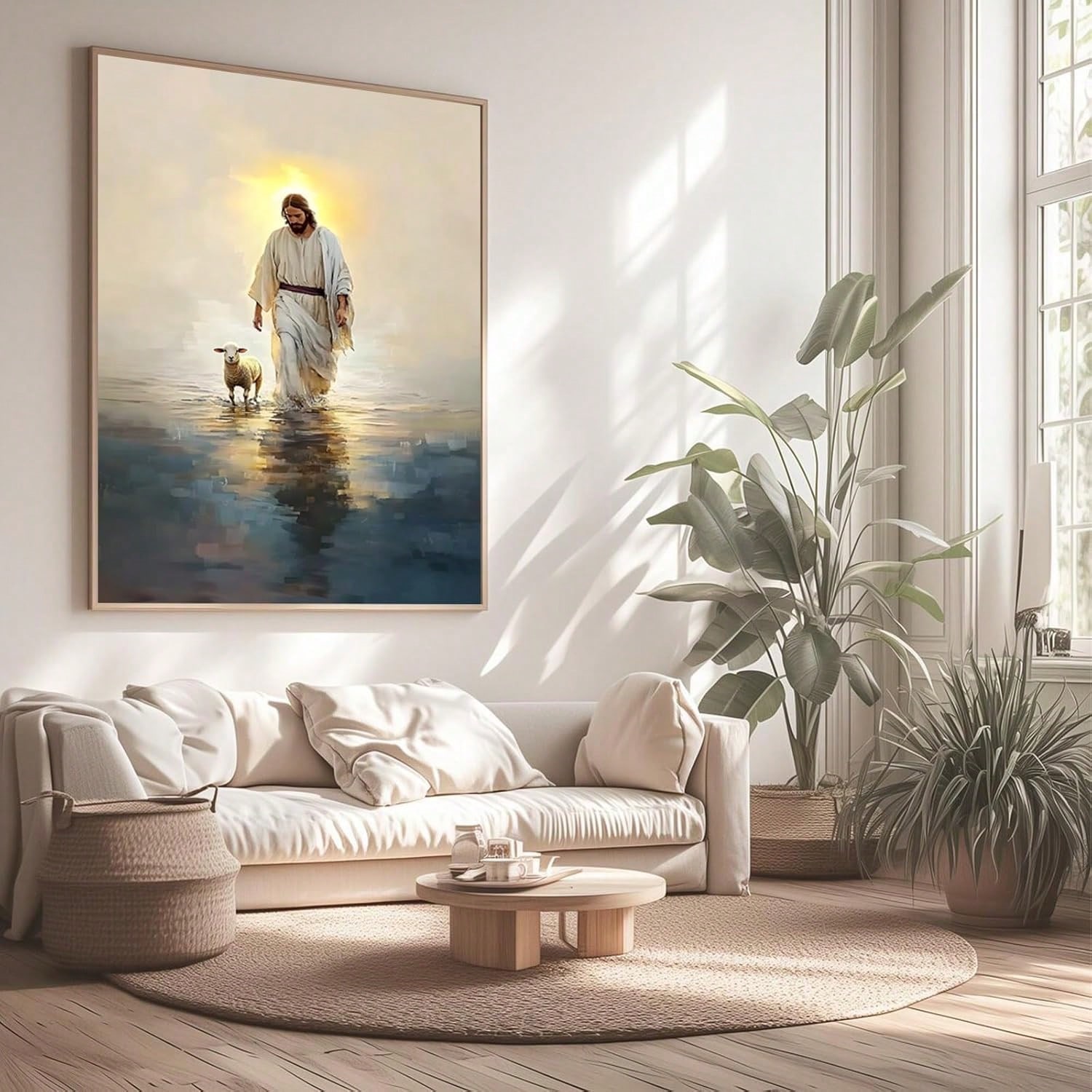 Jesus Walking On Canvas Wall Art With Jesus Picture Wall Christian Painting Poster Living Room Bedroom Dining Room Decor * IN(Poster)Room Decor Bedroom,Smiling Friends,Room Decor,Decrotions,, Cuadros,Coffee Bar Essentials