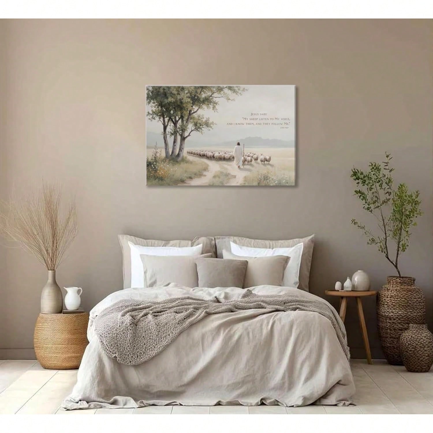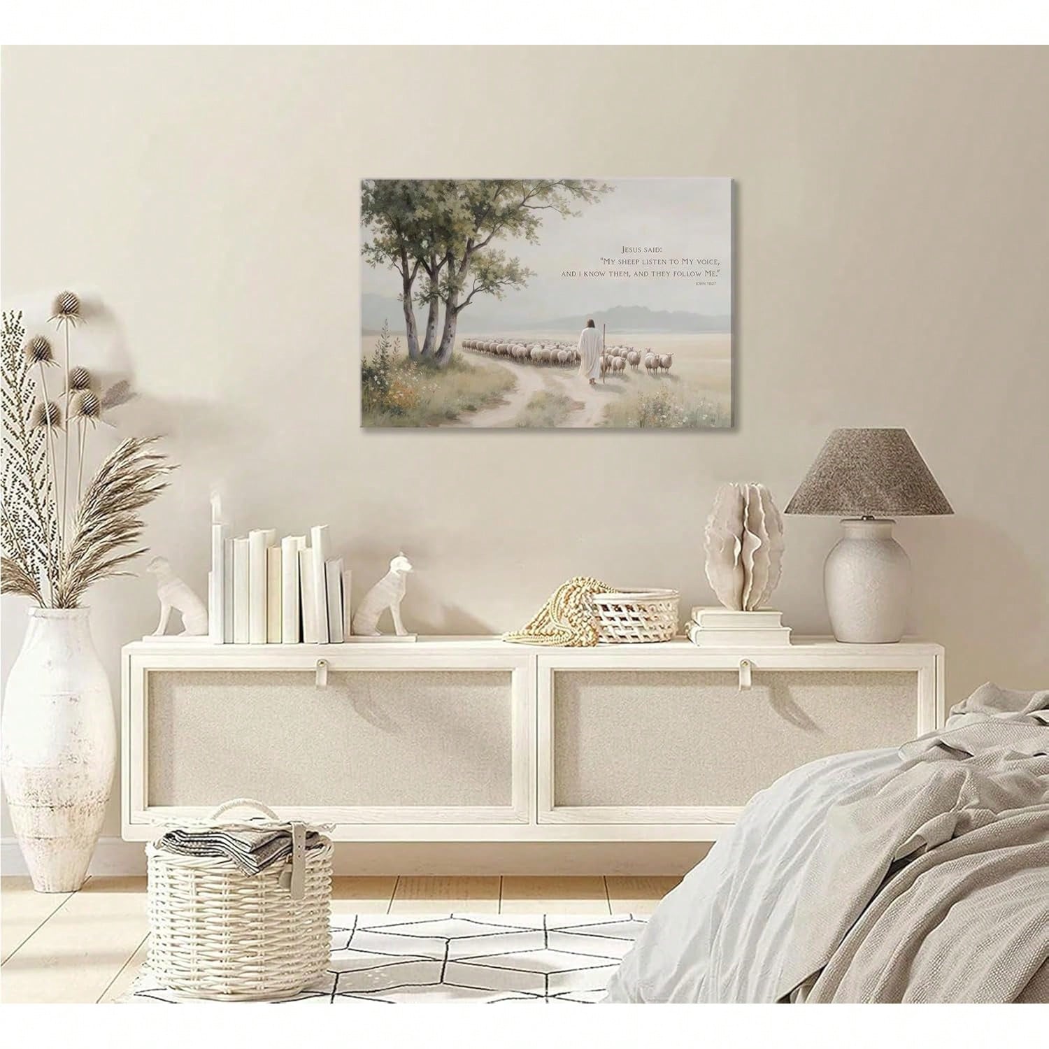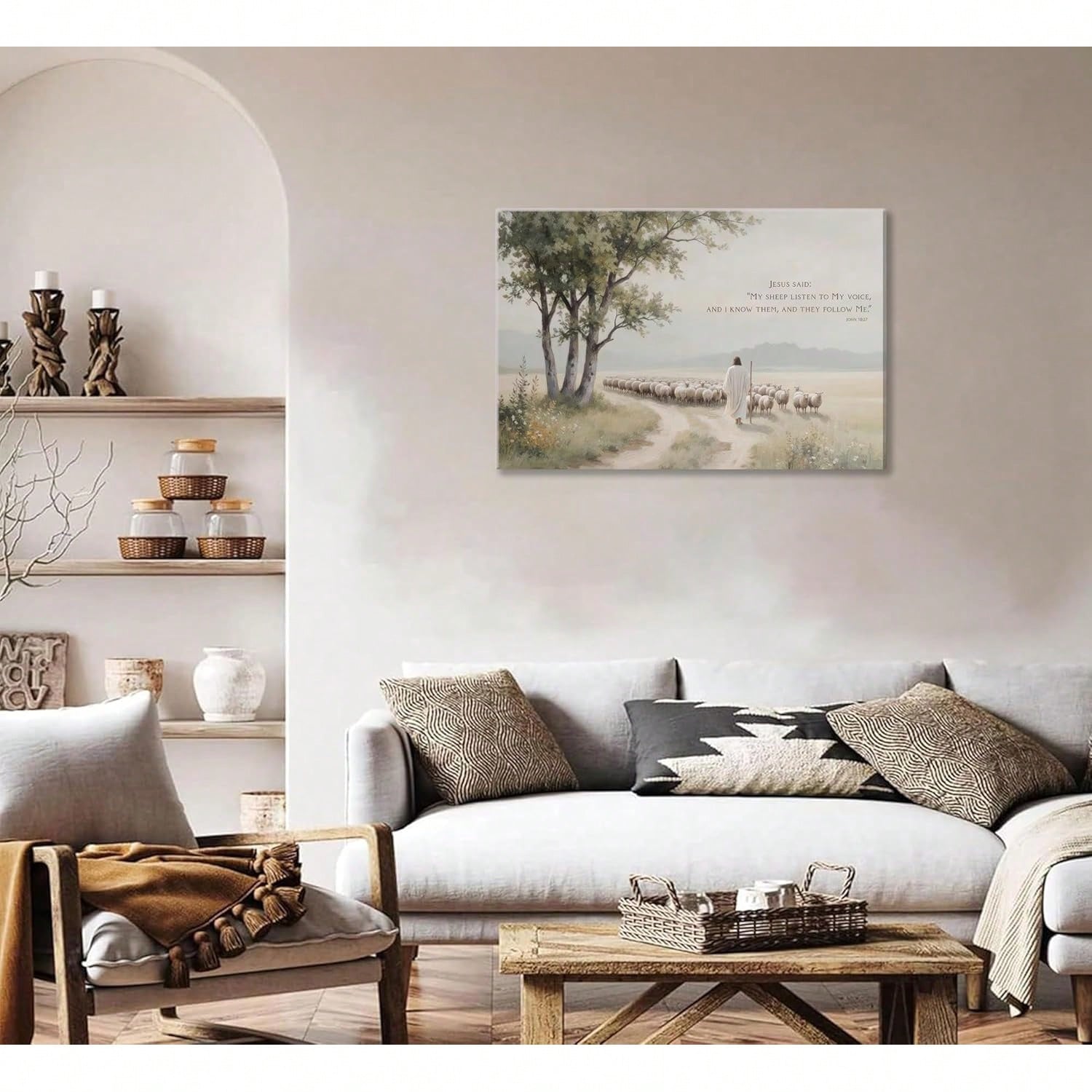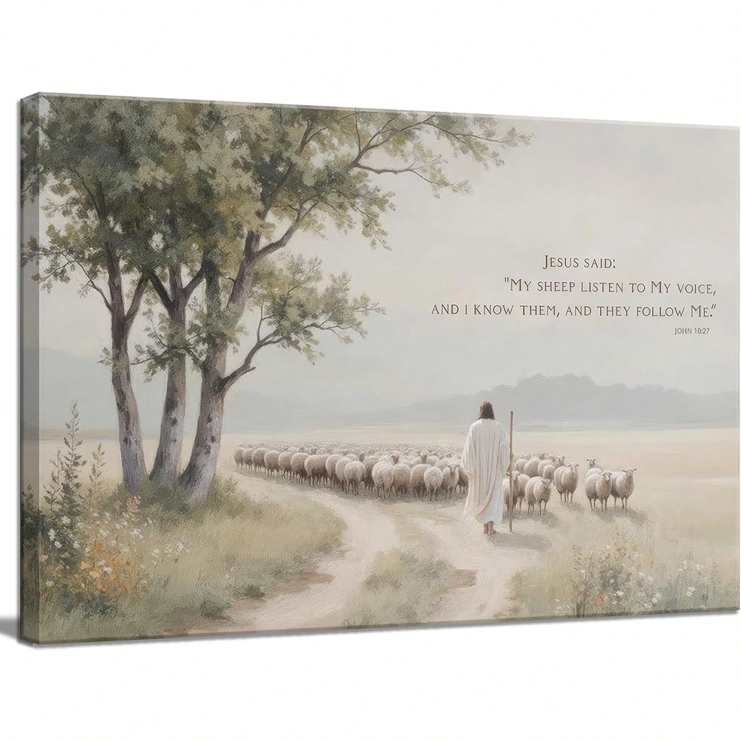 MUJ Jesus And Canvas Wall Art Jesus Sheep Religion Stories Wall Decor Picture Christian Bible Prints Shep Herd Lost Painting Artwork Living Room Home Decorationroom Decor Bedroom,Smiling Friends,Room Decor,Decrotions,, Cuadros,Coffee Bar Essentials