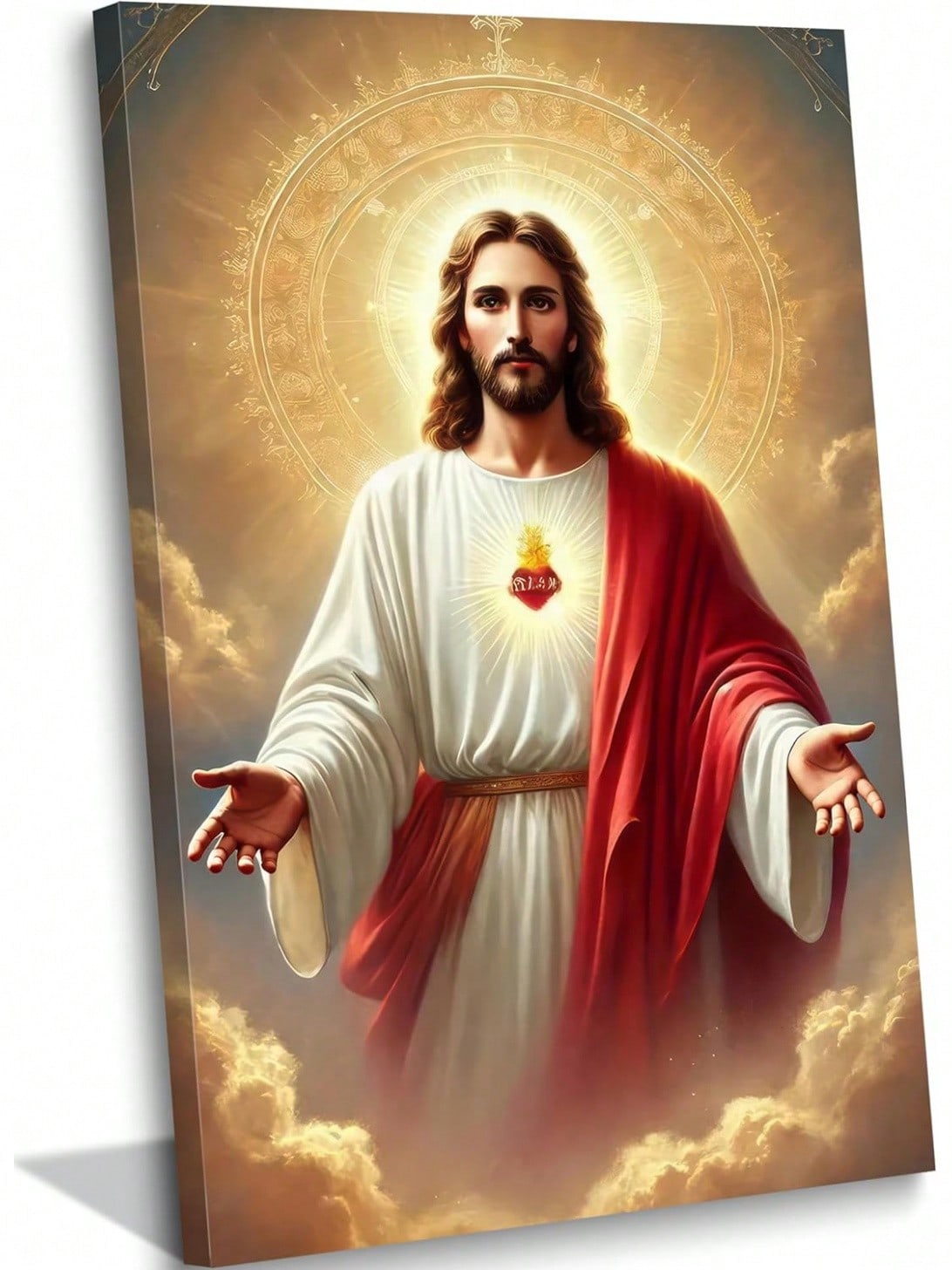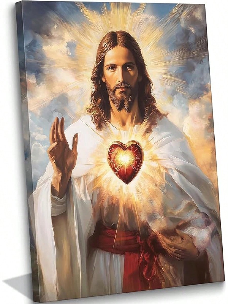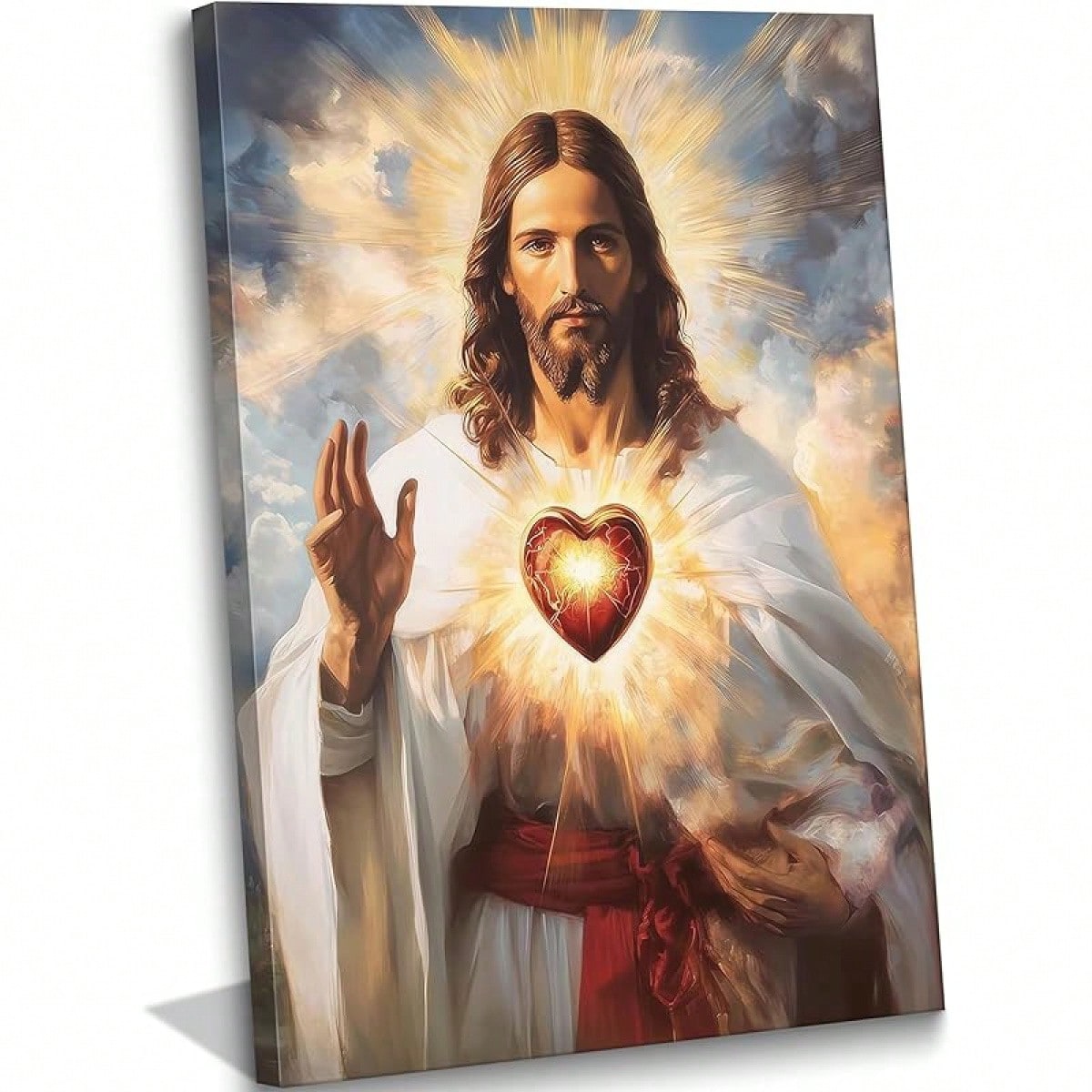 Sacred Heart Of Jesus Canvas Wall Art Christ Jesus Divine Mercy Portrait Picture Catholic Tranquility Painting Poster Print Living Room Bedroom Prayer Wall Decor XIn Price Including Frame,Room Decor Bedroom,Smiling Friends,Room Decor,Decrotions,, Cuadros,Coffee Bar Essentials