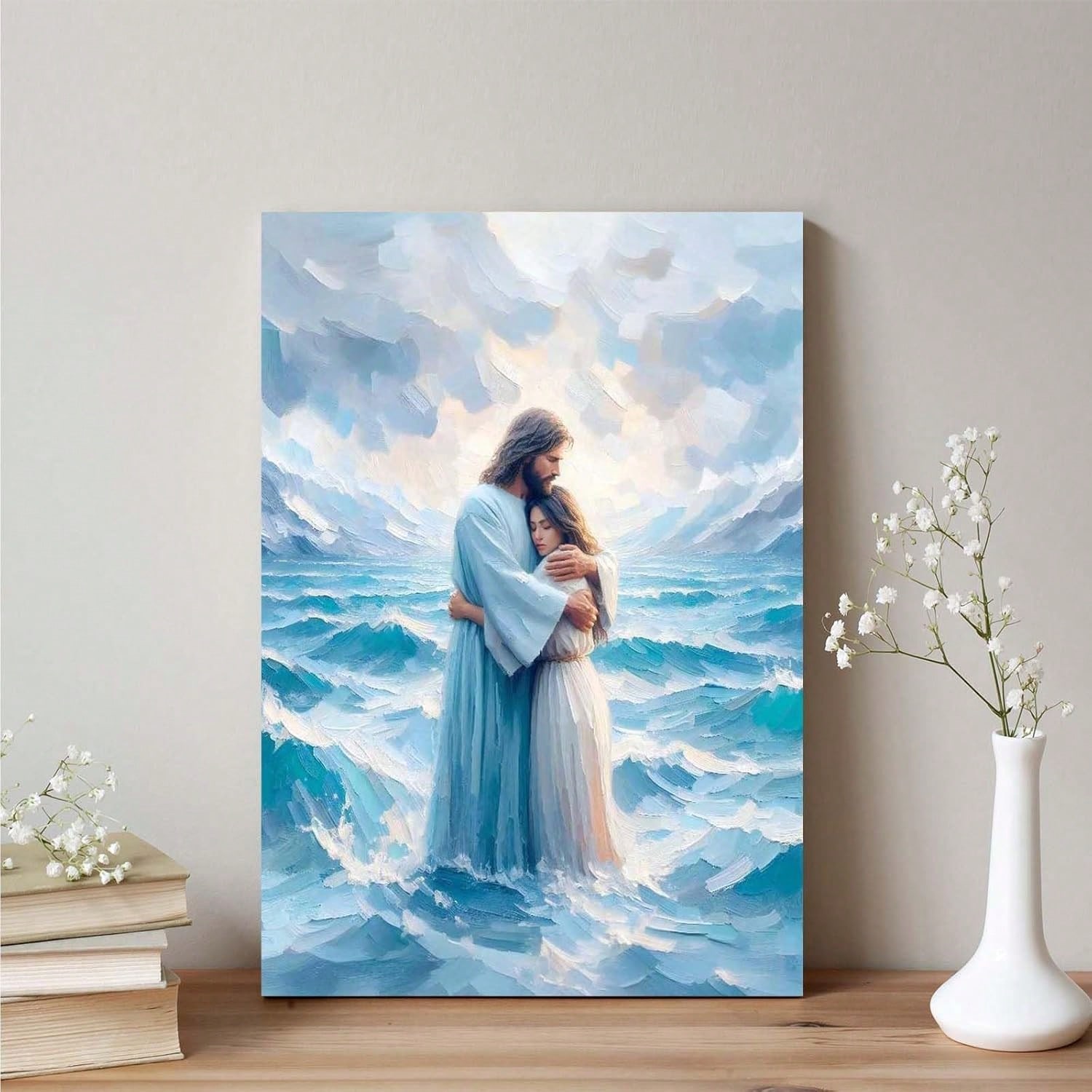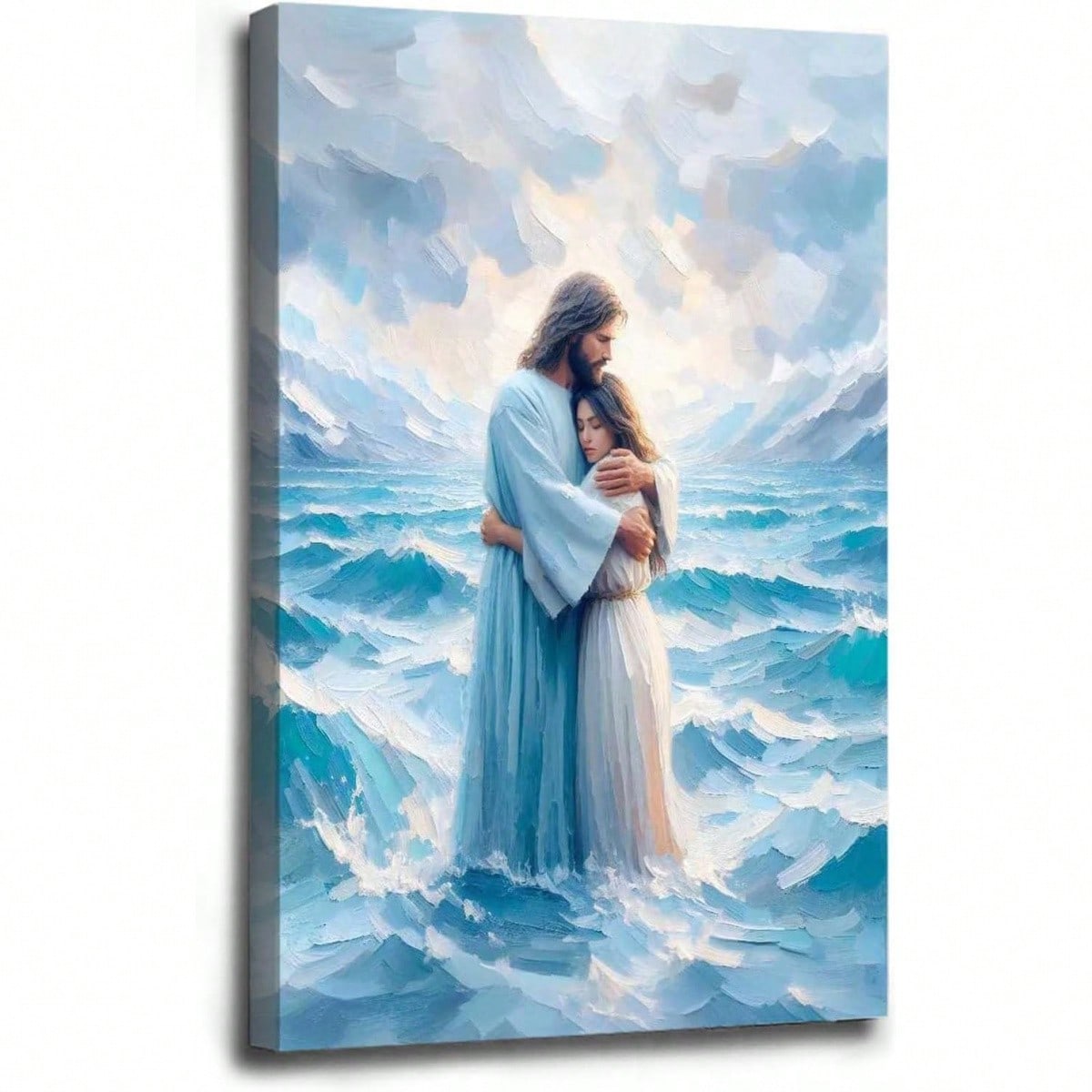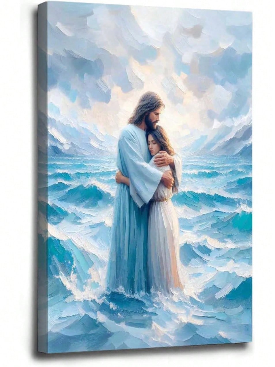 Jesus Hugging Woman Canvas Wall Art Jesus Portrait Oil Painting Print Christian Art Bible Art Bible Mural Bedroom Living Room Bathroom Dining Room Home Office Decorroom Decor Bedroom,Smiling Friends,Room Decor,Decrotions,, Cuadros,Coffee Bar Essentials
