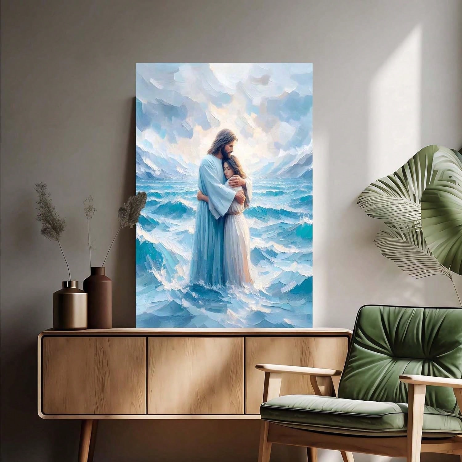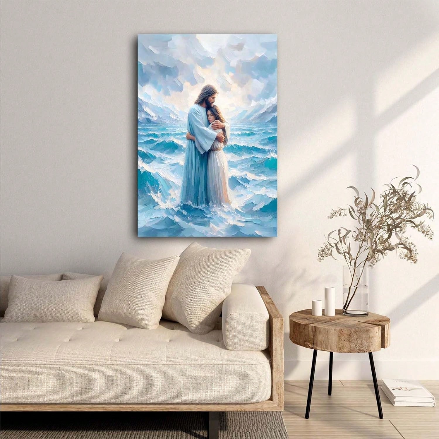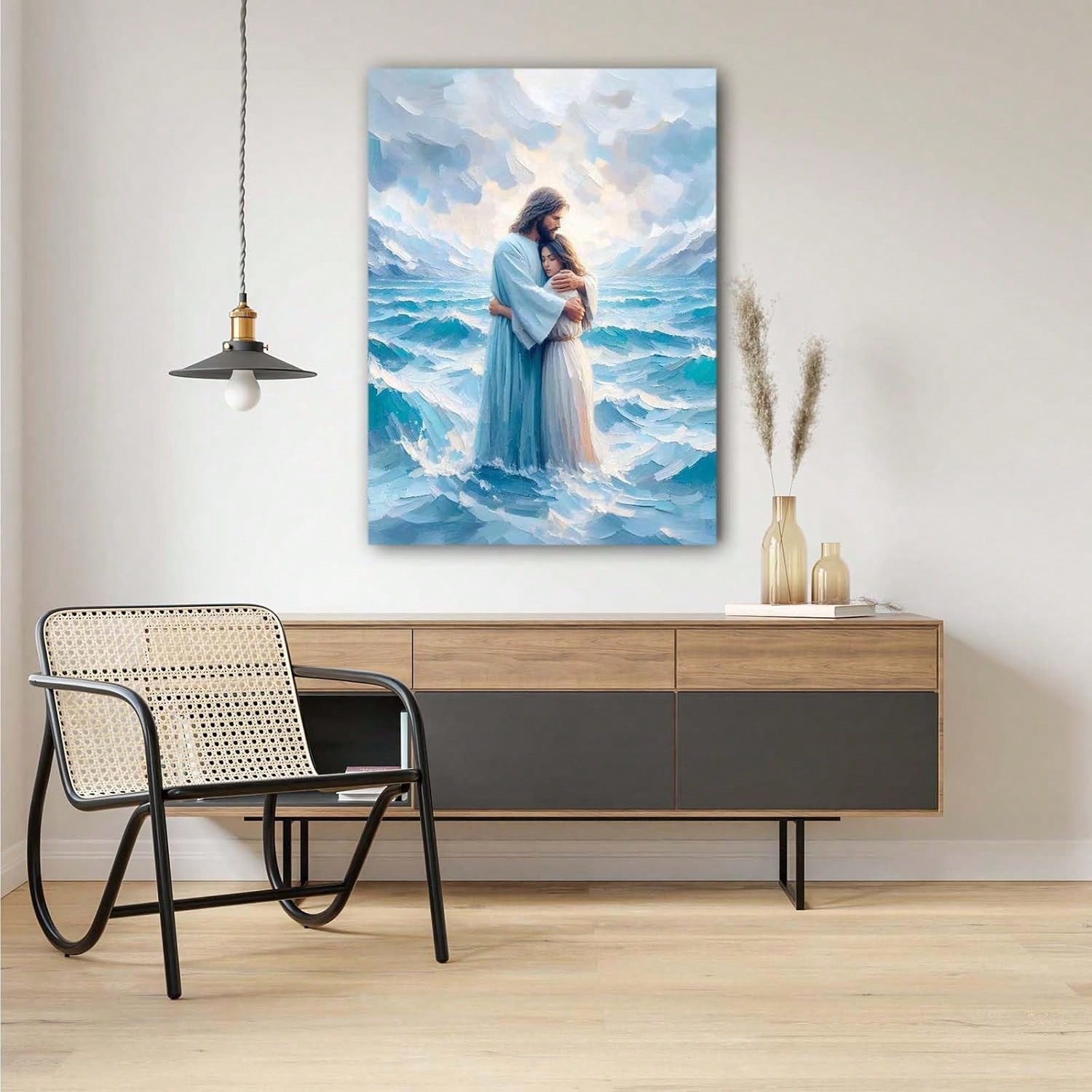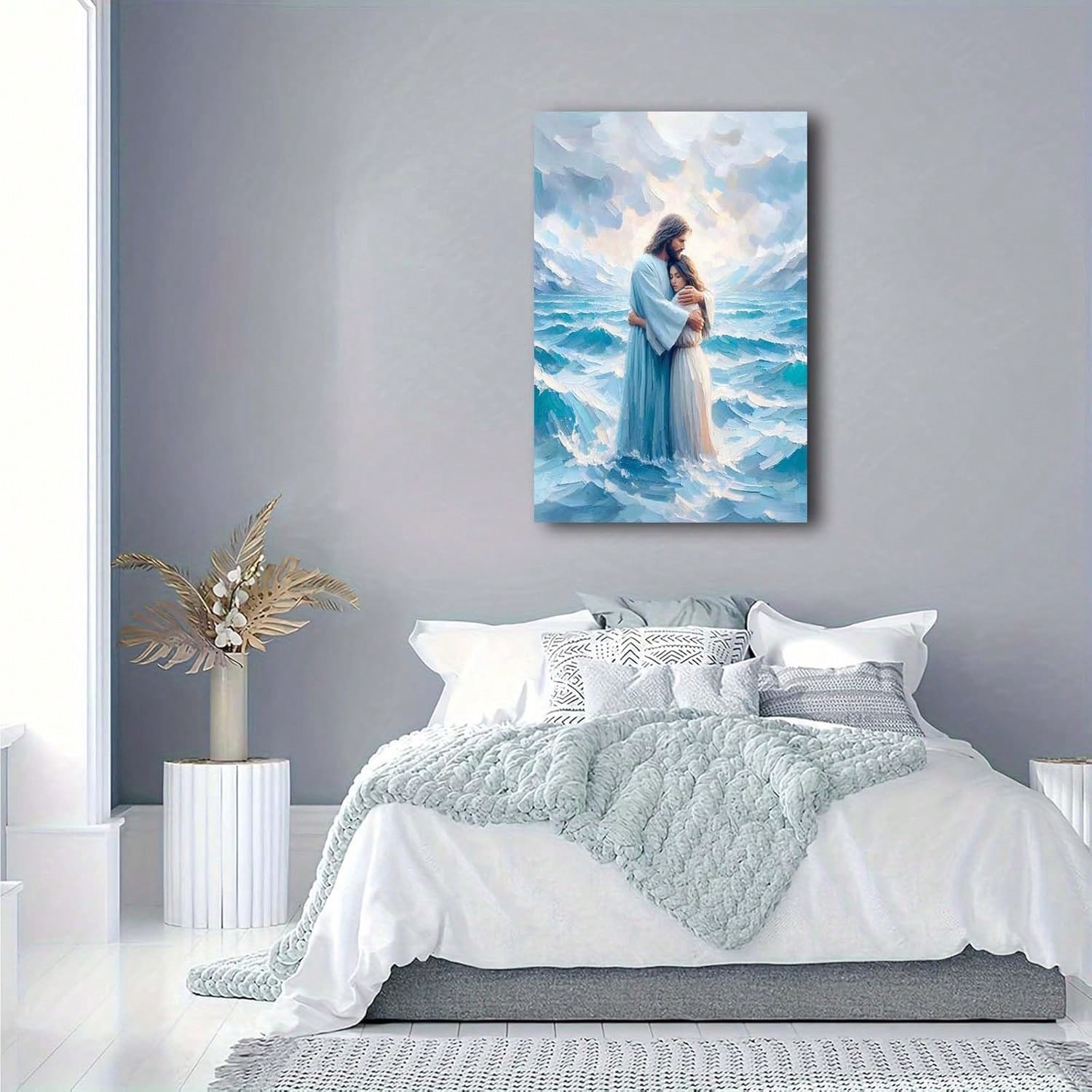 Jesus Hugging Woman Canvas Wall Art Jesus Portrait Oil Painting Print Christian Art Bible Art Bible Mural Bedroom Living Room Bathroom Dining Room Home Office Decorroom Decor Bedroom,Smiling Friends,Room Decor,Decrotions,, Cuadros,Coffee Bar Essentials